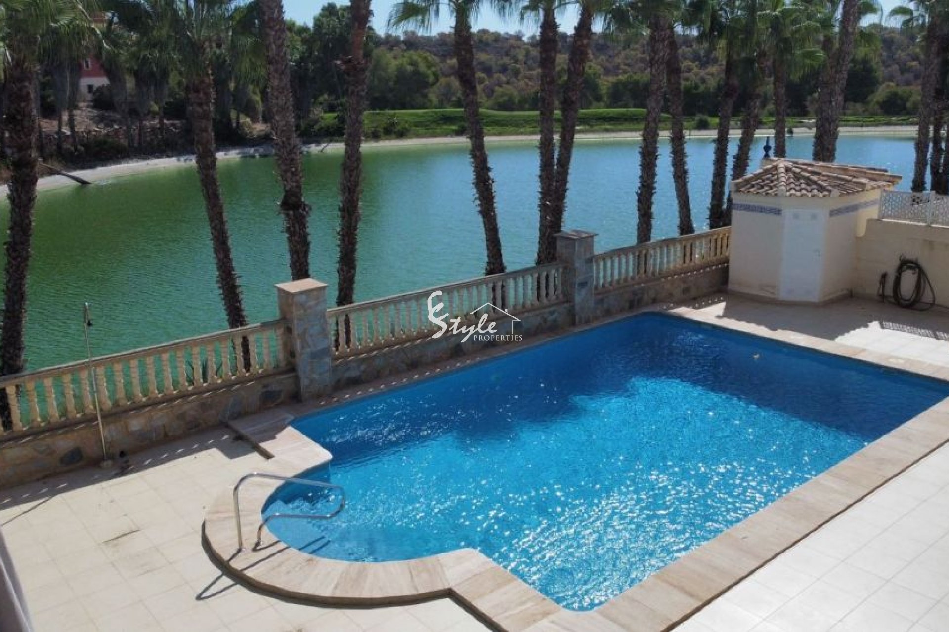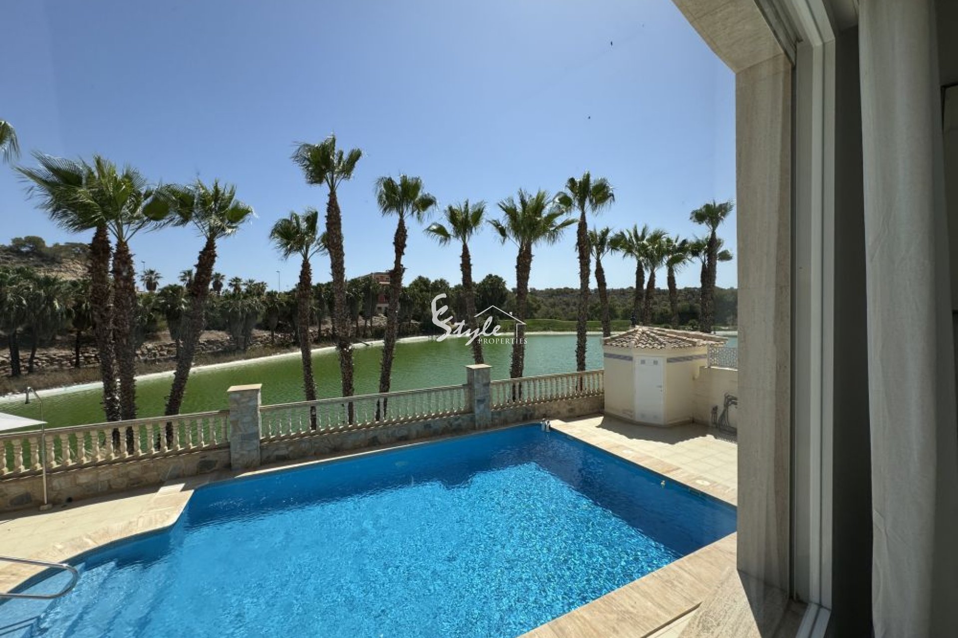 Le ofrecemos a la venta esta propiedad de lujo situada en el corazón del famoso complejo de golf Las Colinas y con impresionantes vistas a un campo de golf y un hermoso lago, rodeado de palmeras.