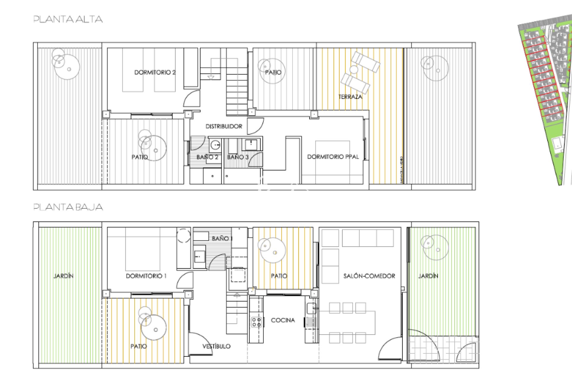Adosado con 3 dormitorios y 3 baños, sala con comedor, patio y terraza privada esta muy cerca de la playa. La casa esta amueblada con todos electrodomésticos, hay zona de barbacoa y jardín.