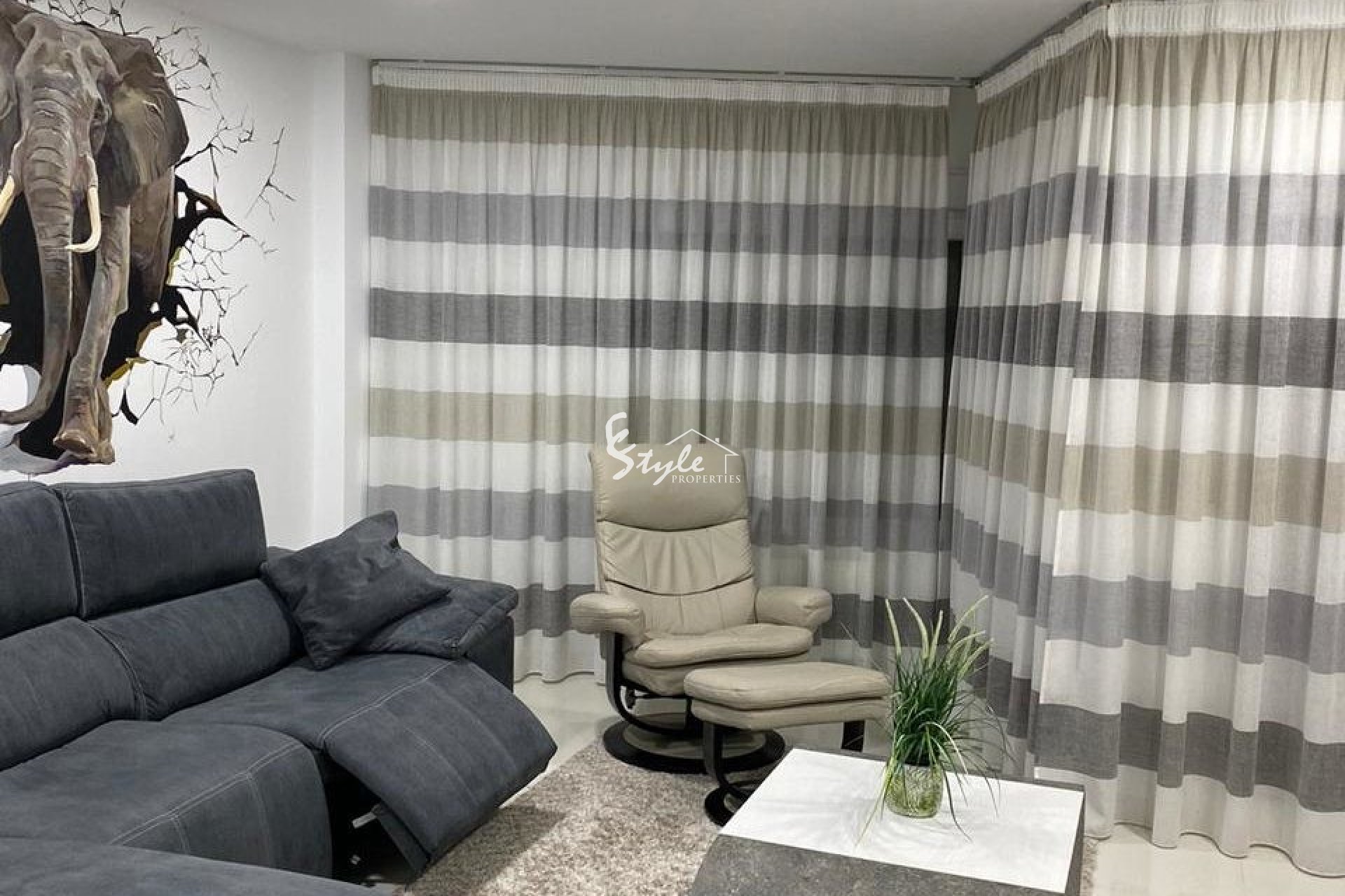 La propiedad consta de 3 dormitorios, 2 baños, amplio salón, cocina moderna abierta con comedor, terraza trasera acristalada y un soleado balcón con vistas laterales al mar. El apartamento se vende completamente amueblado y equipado con electrodomésticos, y ha sido recientemente reformado.