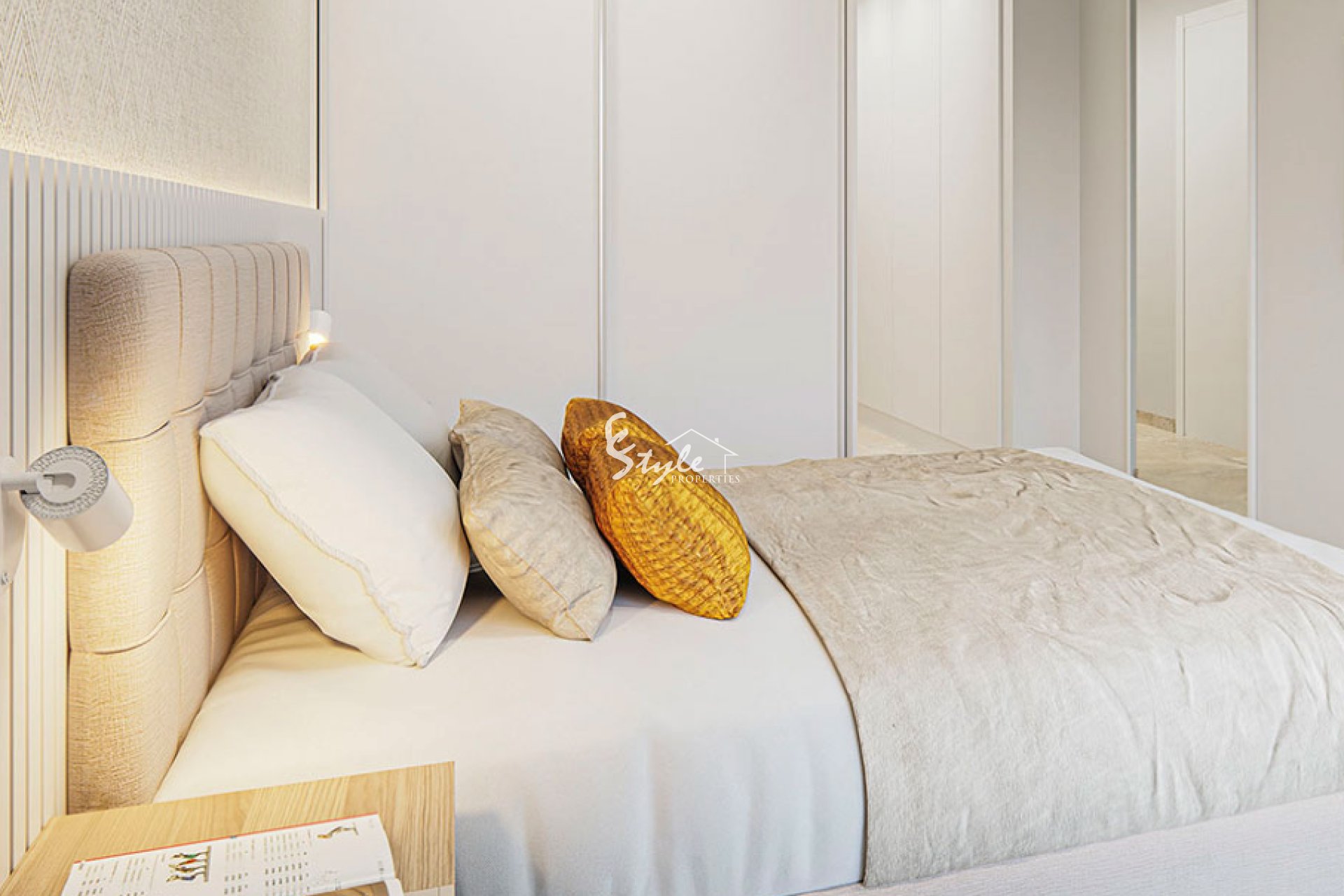 Apartamentos en venta en Torrevieja Costa Blanca. El nuevo complejo residencial está situado a poca distancia de la playa en la exclusiva zona Torrevieja. El complejo residencial cuenta la piscina y hermosas áreas verdes. Muy cerca se encuentra la parada de autobús, bares, restaurantes, centros comerciales grandes y las famosas salinas de Torrevieja.