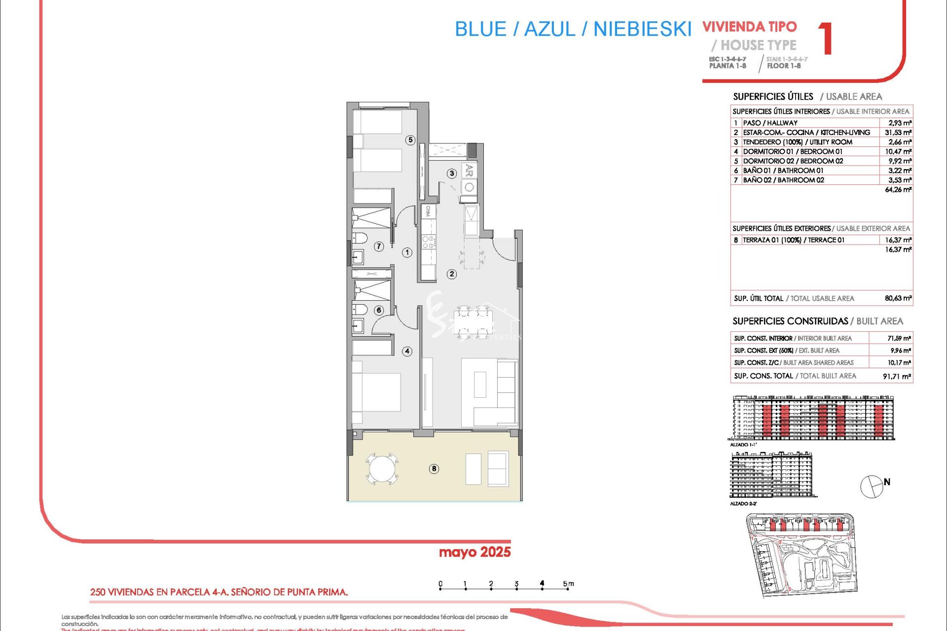 El interior de las viviendas está diseñado para ofrecer el máximo confort y funcionalidad. Los apartamentos y plantas bajas cuentan con suelos de gres porcelánico, que aportan un toque de elegancia y son fáciles de mantener. El sistema de videoportero proporciona seguridad y comodidad, mientras que las persianas eléctricas permiten un control eficiente de la luz y la privacidad. Los electrodomésticos de alta calidad están incluidos, facilitando la vida diaria de los residentes. El aire acondicionado asegura un ambiente fresco durante los meses más cálidos, y los armarios empotrados ofrecen un espacio de almacenamiento óptimo. La distribución de las viviendas, con opciones de dos o tres dormitorios y dos baños, está pensada para adaptarse a diferentes necesidades y estilos de vida, proporcionando un espacio acogedor y funcional para toda la familia.
