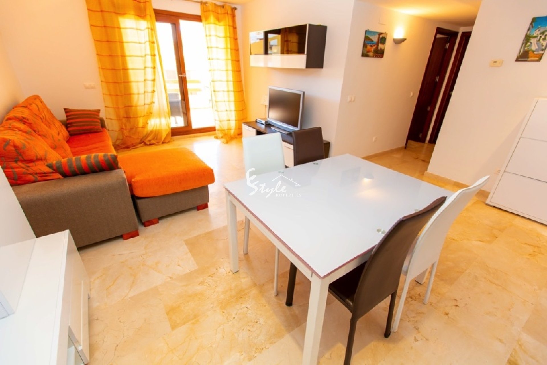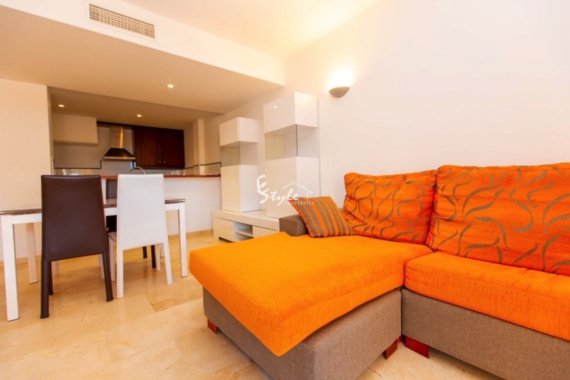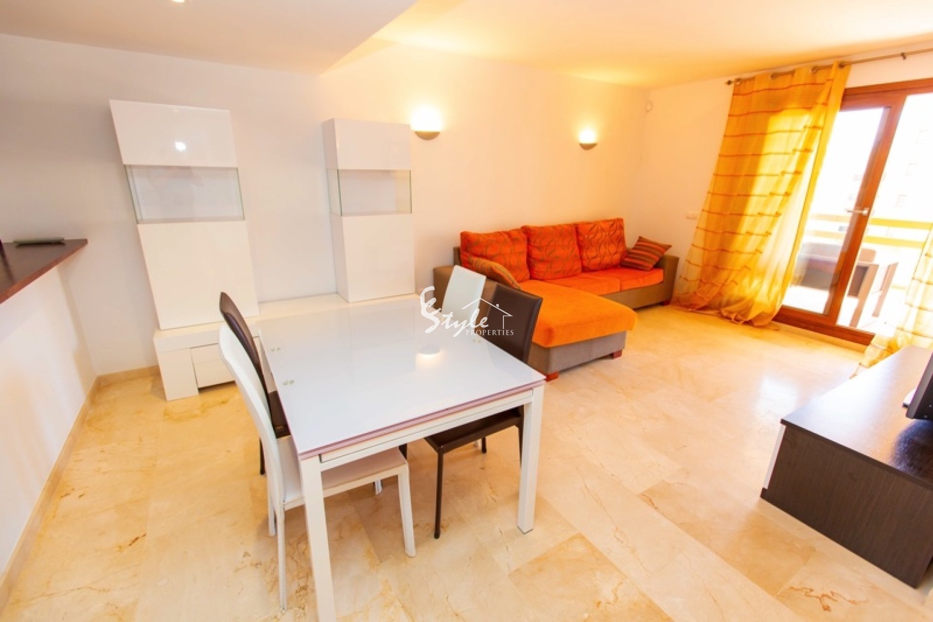 Apartamento tiene 2 dormitorios, dos baños, un amplio y luminoso salón-comedor con salida a la terraza. A pocos pasos se encuentran las playas de Punta Prima, restaurantes y toda la infraestructura. Se vende con plaza de parking en el garaje subterráneo.
