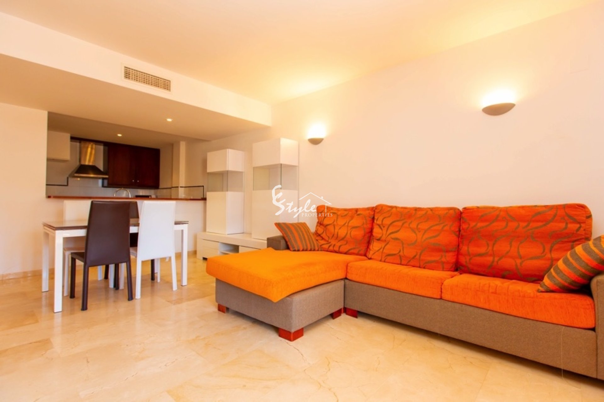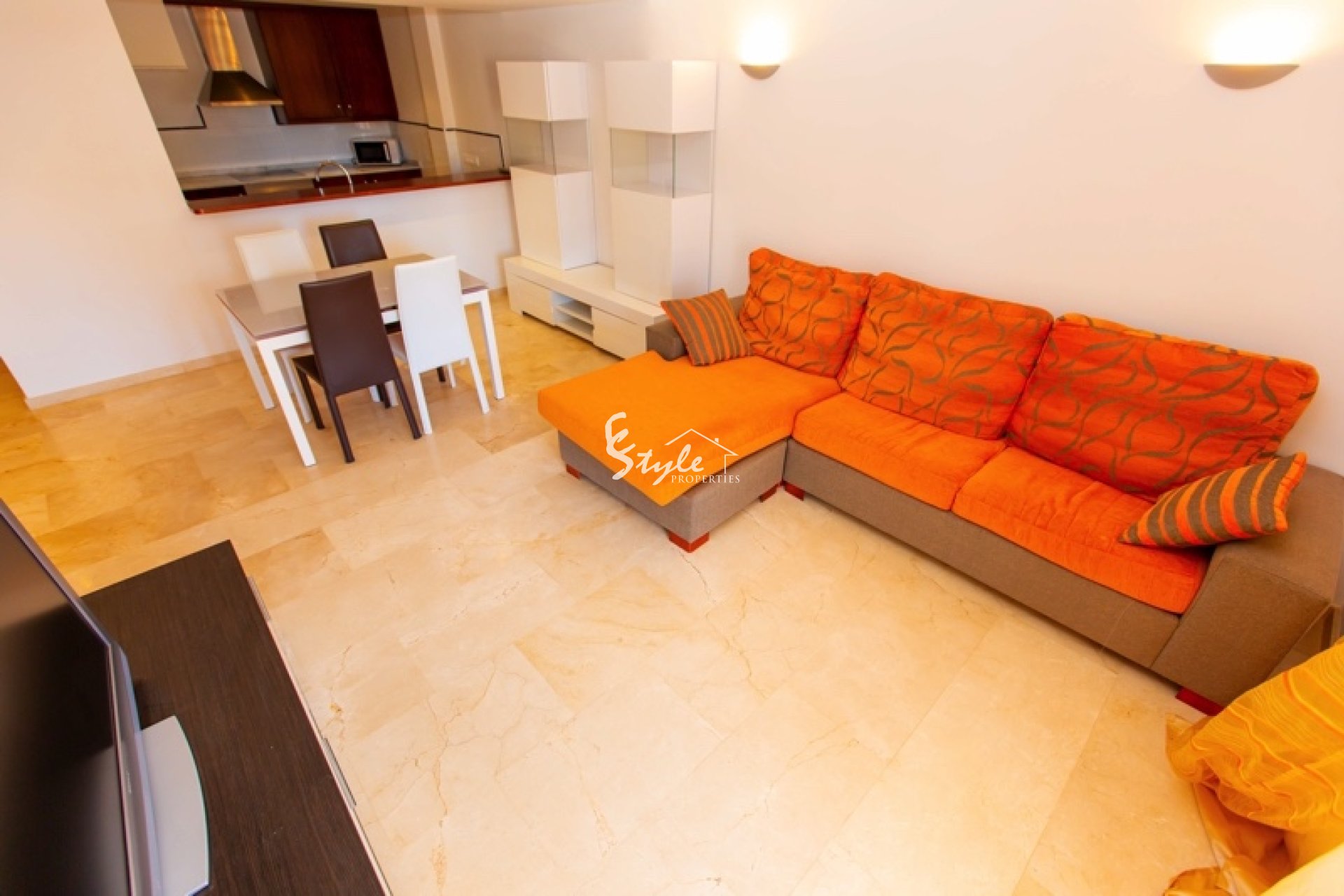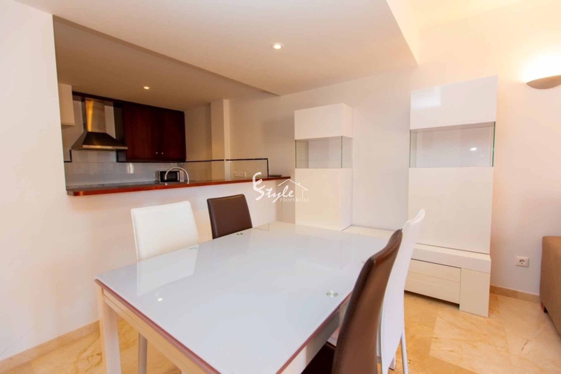 Apartamento tiene 2 dormitorios, dos baños, un amplio y luminoso salón-comedor con salida a la terraza. A pocos pasos se encuentran las playas de Punta Prima, restaurantes y toda la infraestructura. Se vende con plaza de parking en el garaje subterráneo.