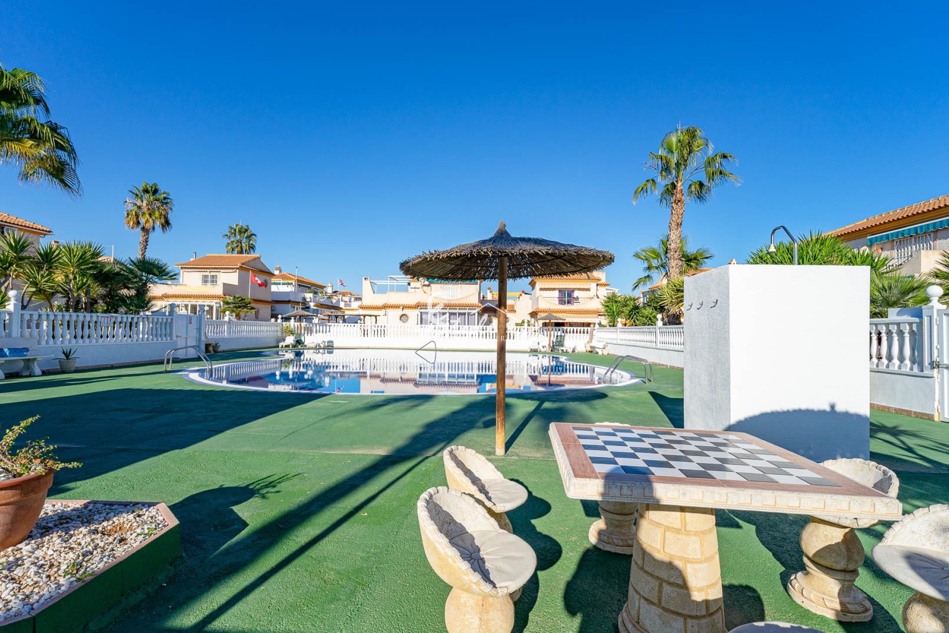 La vivienda forma parte de la atractiva urbanización cerrada Residencial Iria I, que ofrece una gran piscina comunitaria y amplias zonas para tomar el sol, perfectas para disfrutar del clima mediterráneo durante todo el año.