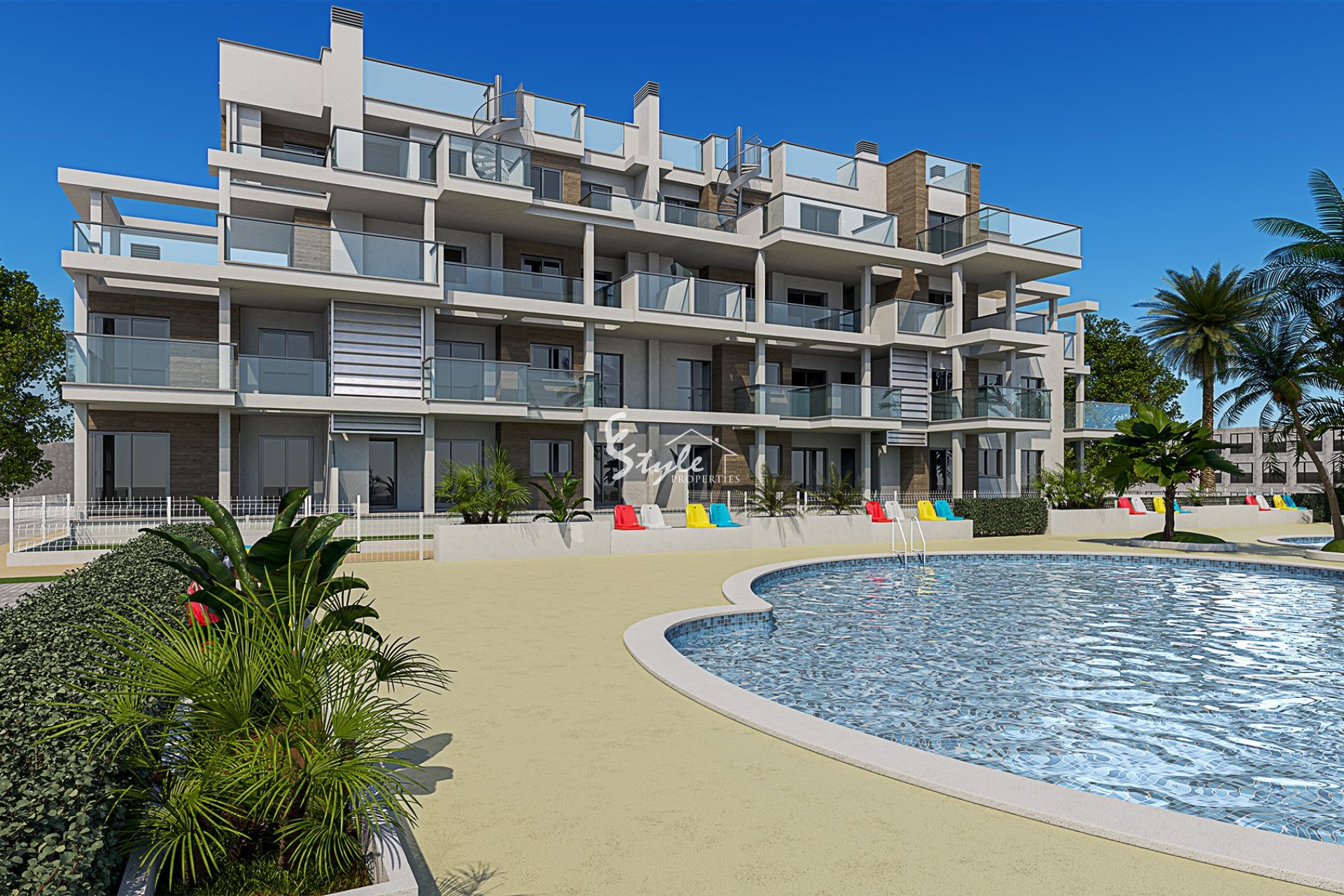 El interior de las viviendas está diseñado para ofrecer comodidad y funcionalidad. Los apartamentos cuentan con suelos de cerámica, que aportan un toque moderno y fácil mantenimiento. Las viviendas están equipadas con electrodomésticos, armarios empotrados y persianas eléctricas, asegurando un estilo de vida cómodo y eficiente. La preinstalación de aire acondicionado permite a los residentes personalizar el clima interior según sus preferencias. Además, cada propiedad dispone de un videoportero, proporcionando seguridad y comodidad. Las opciones de distribución incluyen viviendas de 2 y 3 dormitorios, con 2 baños, adaptándose a las necesidades de diferentes familias.