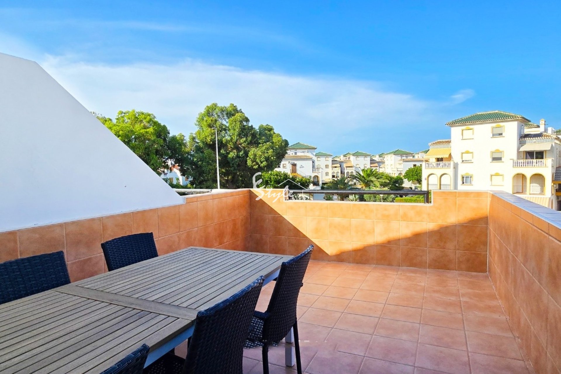 Experimente lo mejor de la vida en España en esta encantadora casa adosada de estilo español, situada en un entorno tranquilo y rodeado de naturaleza, a tan solo 400 metros de la playa de La Mata. Gracias a su posición elevada, la vivienda disfruta de sol durante todo el día, ofreciendo una combinación perfecta de tranquilidad, confort y comodidad.