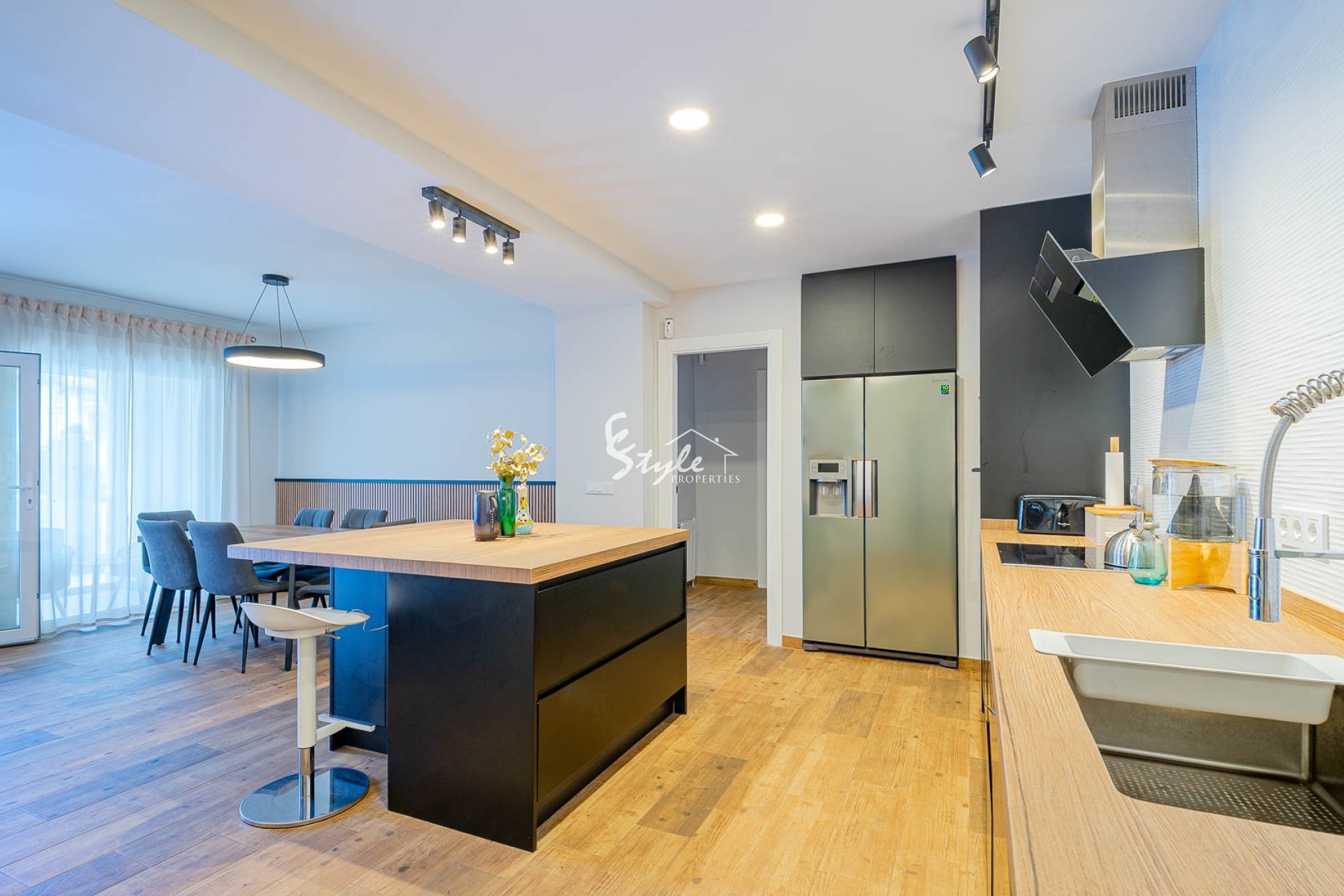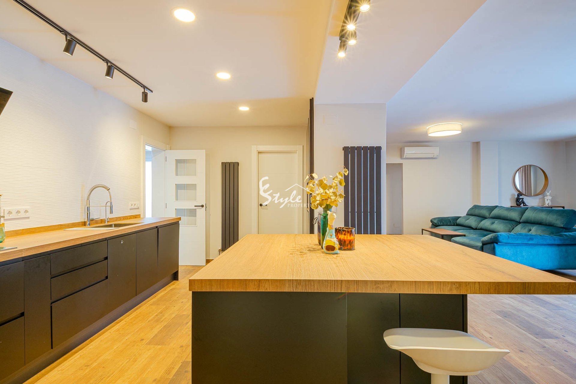En la planta baja encontramos un amplio salón-comedor con cocina abierta y moderna isla central, ideal para reuniones familiares y sociales. En esta planta hay 3 dormitorios, 2 baños completos y un gran vestidor.
