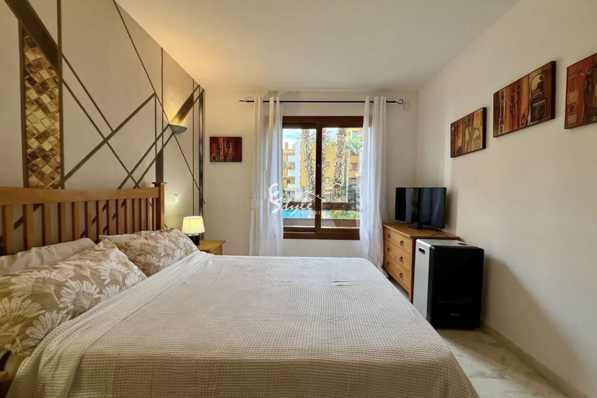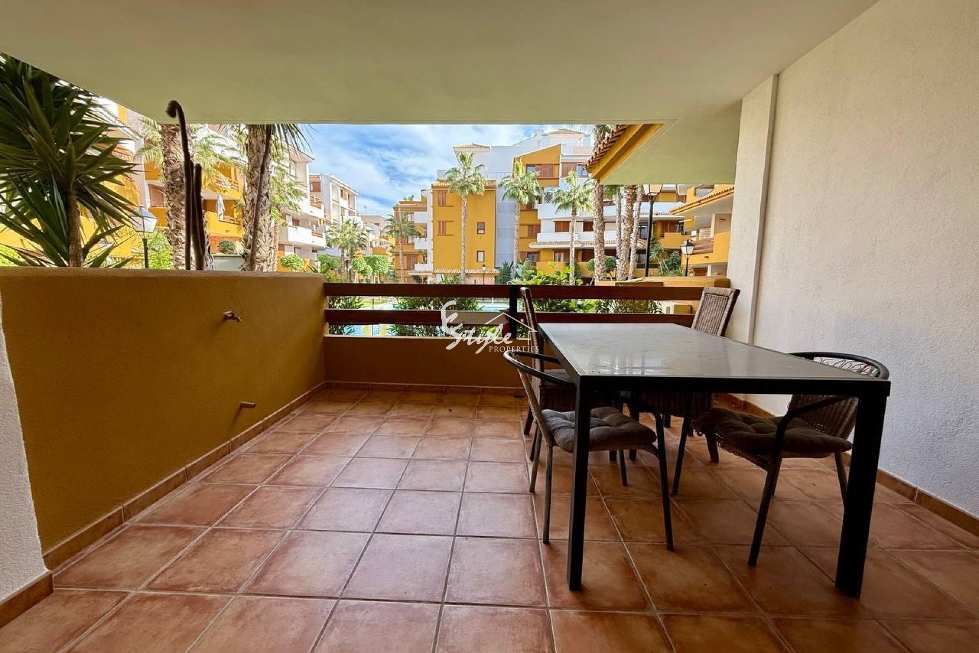La comunidad ofrece a sus residentes jardines tropicales cuidadosamente mantenidos, 3 piscinas comunitarias, seguridad 24 horas y una ubicación inmejorable cerca de supermercados, restaurantes, bares, centros comerciales, bancos y farmacias. El paseo marítimo y la playa se encuentran a solo 5 minutos a pie. Para los amantes del golf, hay varios campos reconocidos a solo 10 minutos en coche, como Las Colinas Golf, Las Ramblas Golf, Villamartin Golf y Campoamor Golf.