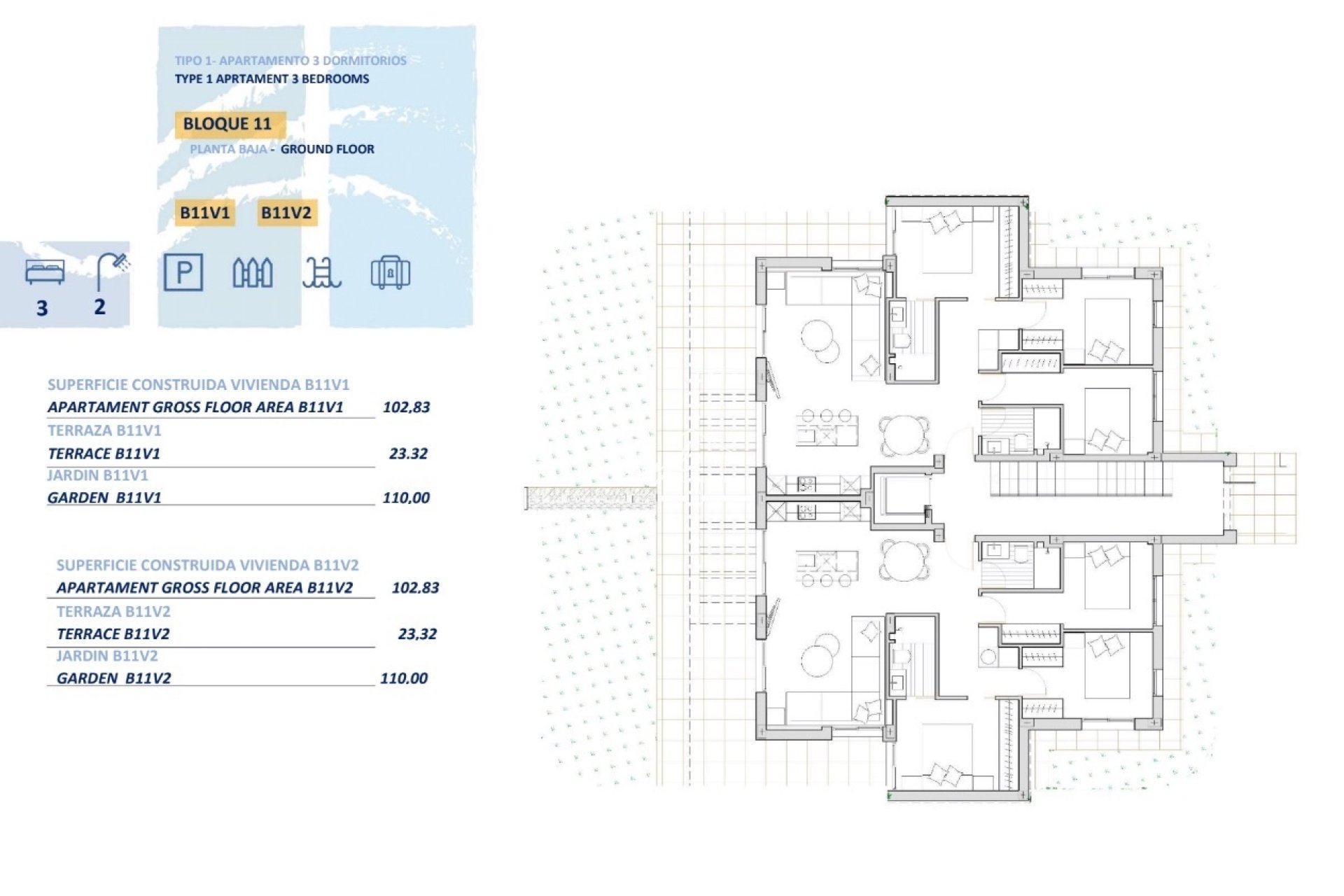 Las viviendas están equipadas con características modernas que aseguran el máximo confort. Todas las unidades vienen amuebladas y cuentan con electrodomésticos, lo que facilita la mudanza y el inicio de una nueva vida. El suelo de cerámica añade un toque elegante y es fácil de mantener. Las persianas eléctricas y el videoportero proporcionan comodidad y seguridad, mientras que el aire acondicionado y la preinstalación de aire acondicionado aseguran un ambiente agradable durante todo el año. Los armarios empotrados ofrecen un almacenamiento eficiente, y la posibilidad de cargar vehículos eléctricos es un plus para quienes buscan opciones sostenibles. Las viviendas están disponibles en configuraciones de 2 o 3 dormitorios, todas con 2 baños, lo que las hace adecuadas para familias de diferentes tamaños.