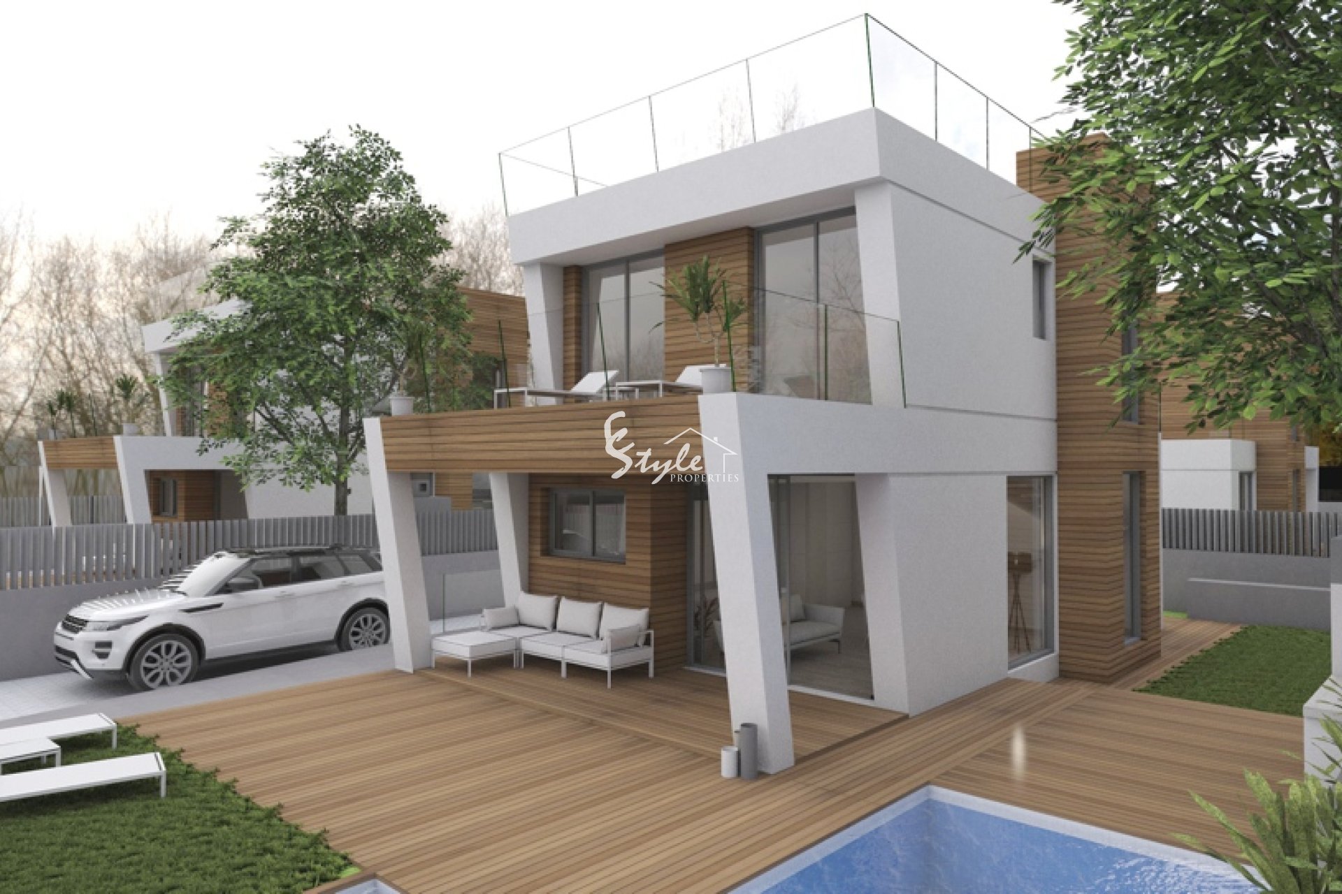 Ofrecemos nuevas villas de lujo por el promotor, junto al mar, en el sur de la Costa Blanca. Con un diseño original, de forma cómoda, amplias habitaciones. Cada villa tiene 3 dormitorios, 3 baños, amplias terrazas, sala de estar con comedor, cocina y lavadero. Por un suplemento, se puede construir un sótano de 50 metros cuadrados. Cada villa tiene una piscina de 4x8 metros. También podemos construir nuestras casas en cualquier lugar de la costa sur de la Costa Blanca.