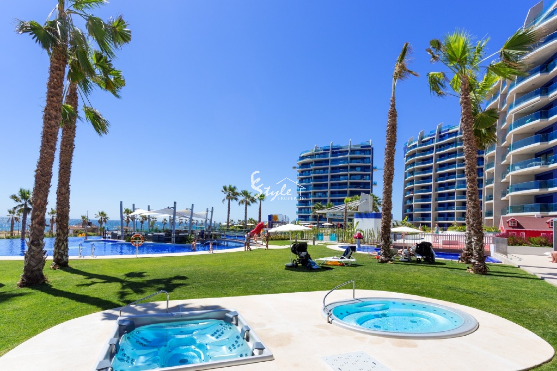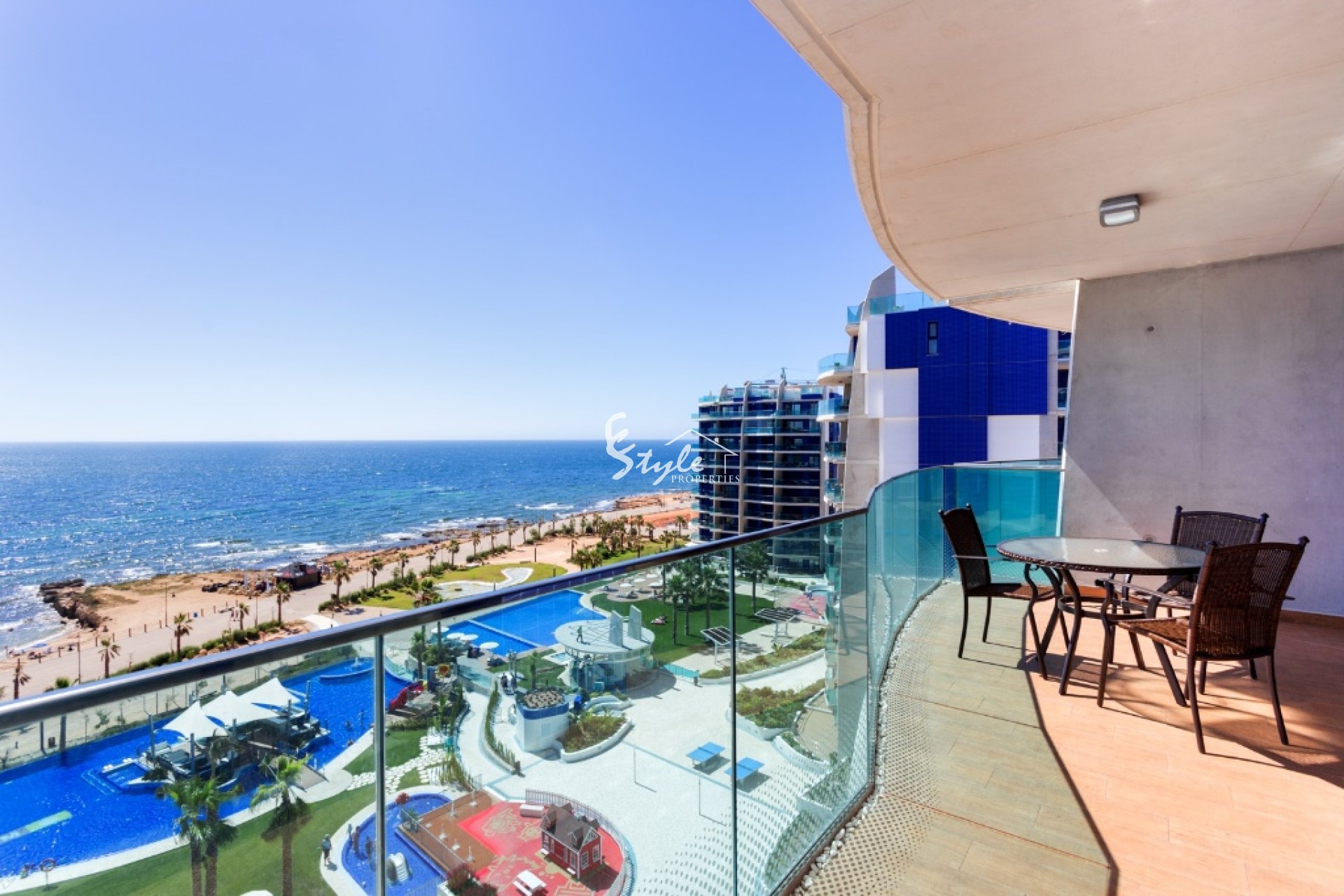 Ofrecemos a alquilar un apartamento situado en un complejo residencial de lujo en primera línea de mar. Nuevos apartamentos equipados con muebles y todo lo necesario para una estancia confortable. En la amplia terraza se puede disfrutar de impresionantes vistas al mar. El apartamento tiene 2 dormitorios, 2 baños, sala de estar, cocina y una amplia terraza con vistas al mar. El apartamento cuenta con un lugar en el garaje subterráneo. El complejo residencial dispone de zona ajardinada con piscina de borde infinito con vistas panorámicas al mar. Una de las piscinas está climatizada, otra tiene un jacuzzi, toboganes de agua, cama de masaje de agua. También isla Chill Out con dos barras. El complejo está equipado con instalaciones deportivas, un gimnasio con vistas al mar, un spa, un parque infantil con una casa de juguete, mesas de ping pong, zona wifi, así como una zona de aparcamiento subterráneo y la infraestructura de servicios perfectamente desarrollados.