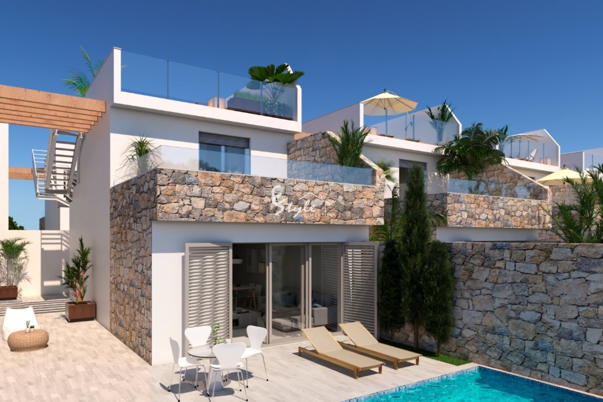 Un nuevo complejo con 39 villas independientes se encuentra a solo 400 metros de la playa. Villas con 3 dormitorios, 2 baños con calefacción por suelo radiante, amplio salón y comedor, cocina, terraza y un solarium. En el exterior podrá disfrutar de un precioso jardín y una piscina privada.