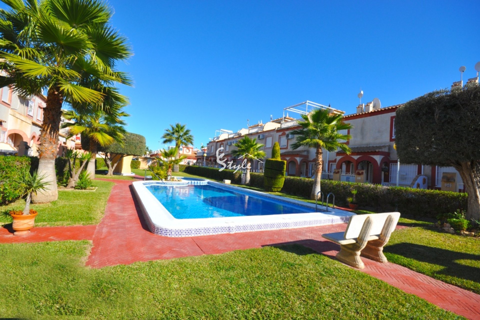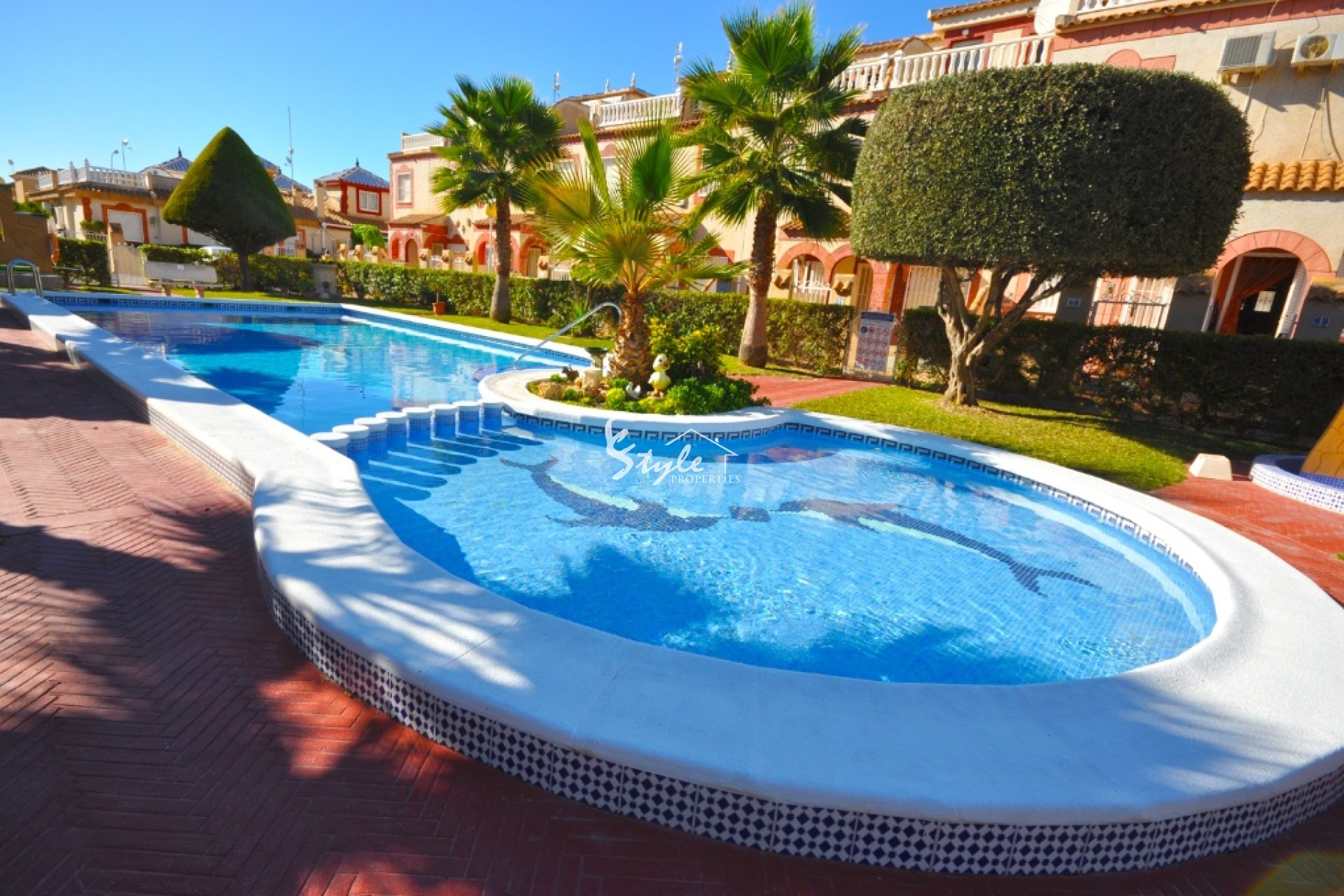Le ofrecemos a la venta esta bonita casa adosada se encuentra en una zona popular de Playa Flamenca. La propiedad tiene 2 dormitorios, 1 baño y 1 aseo para invitados, sala de estar, cocina independiente con salida al patio trasero con cocina de invierno y una terraza. Afuera podrá disfrutar de una zona de piscina comunitaria muy bonita también.