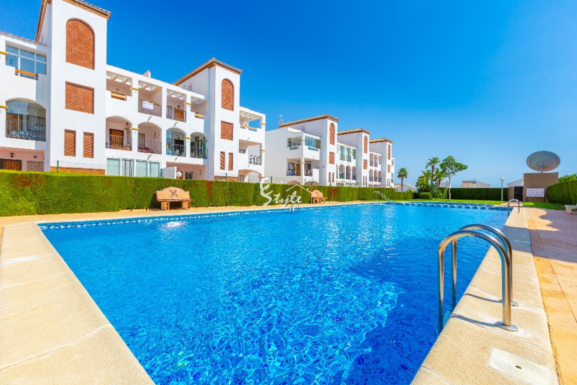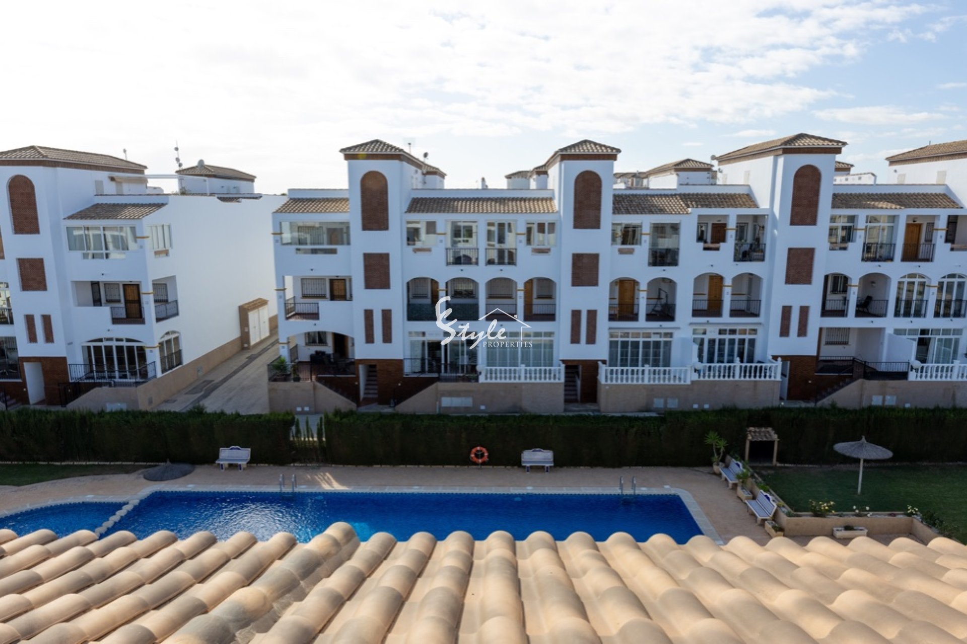 Ático orientado al sur en Punta Prima con vistas a la piscina.