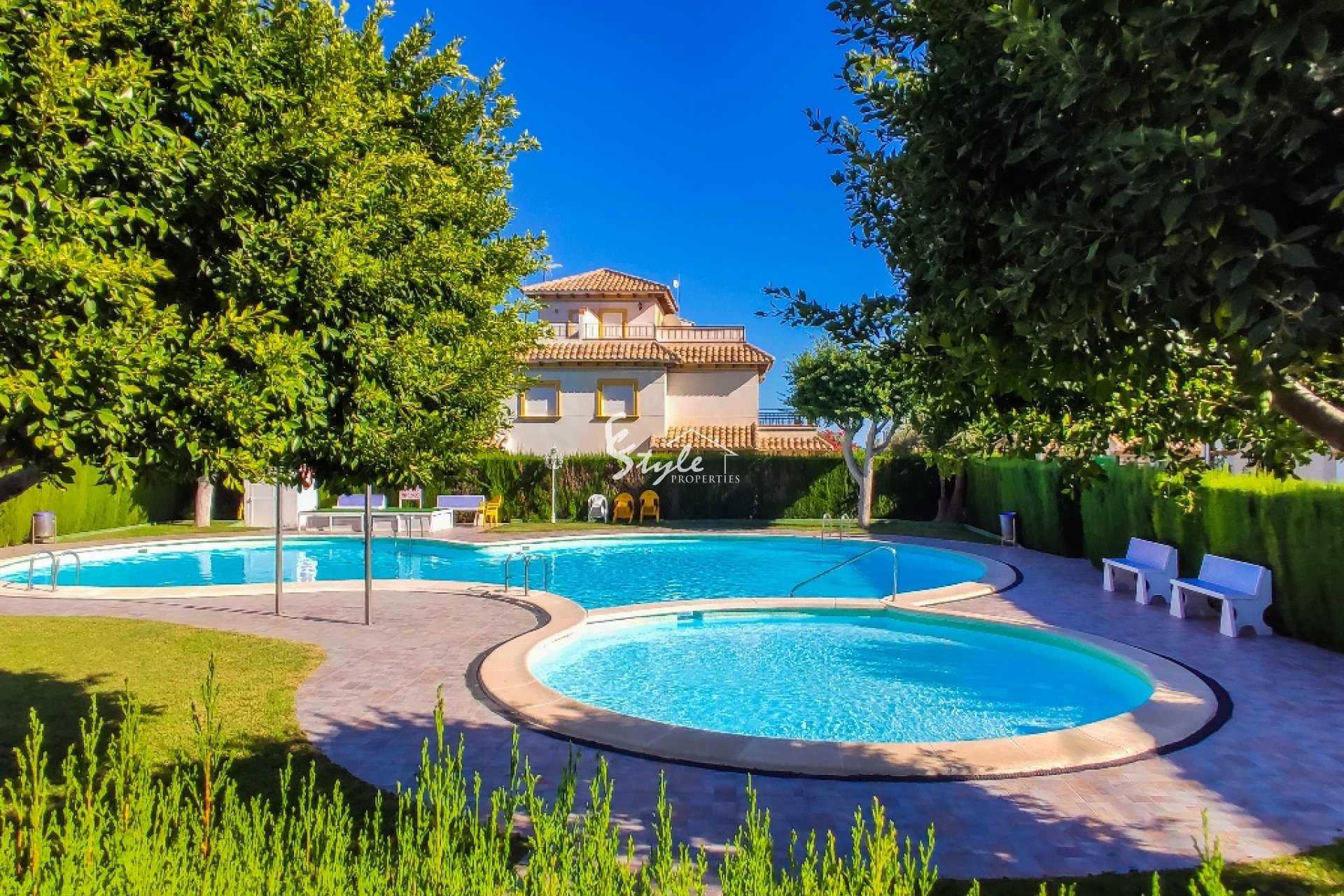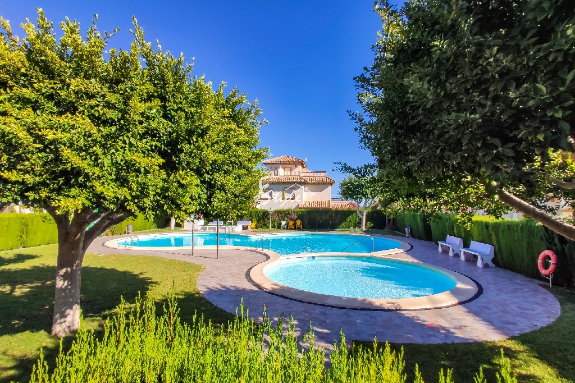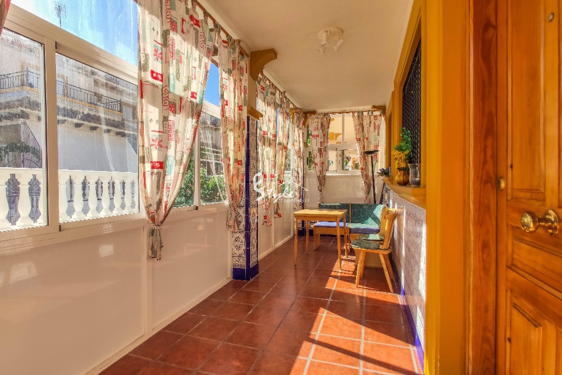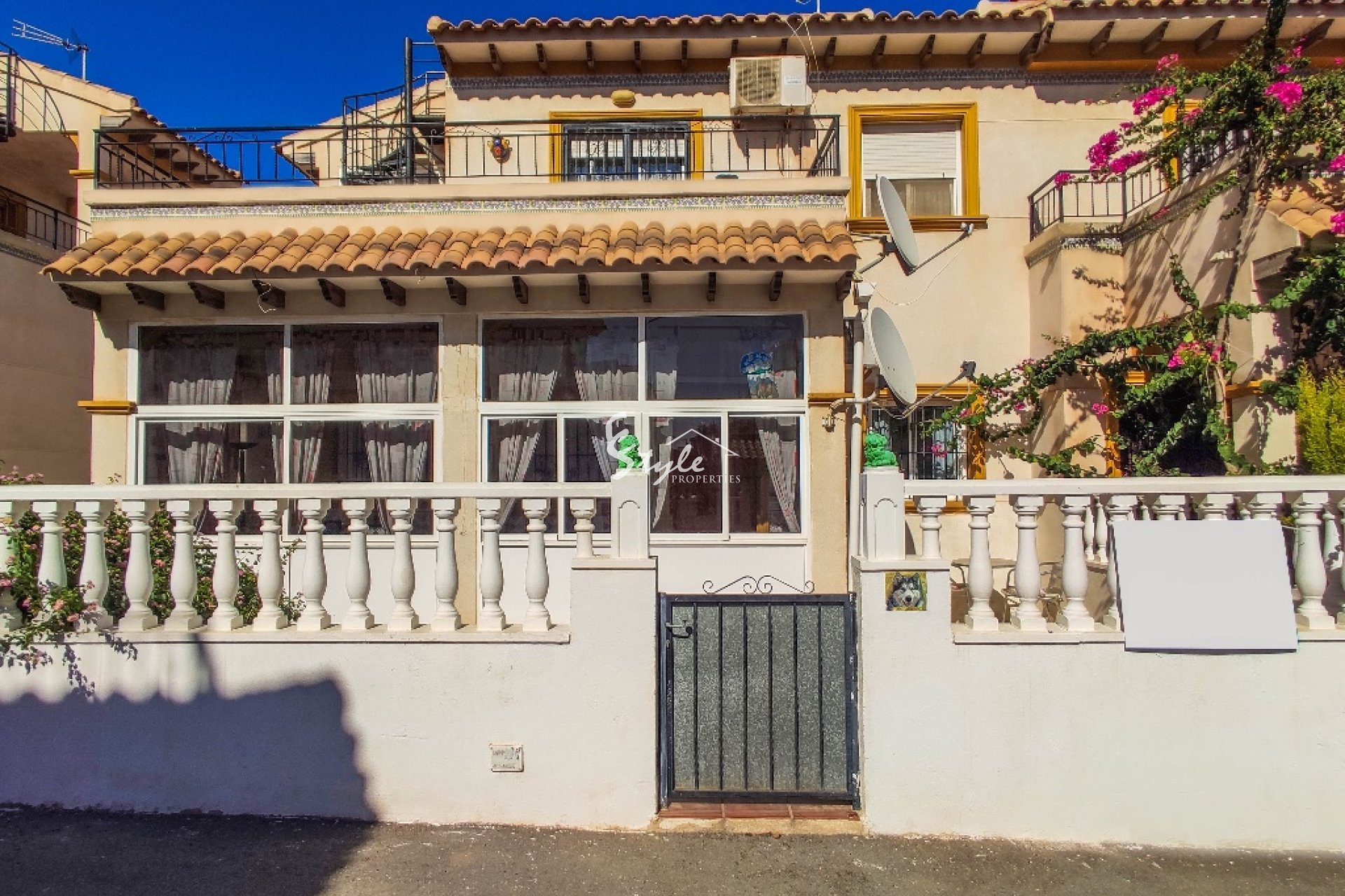 La vivienda en venta está completamente amueblada y dotada de electrodomésticos. Se encuentra cerca de todos los servicios y a distancia andando hasta la playa de Punta Prima. A unos 5-10 minutos en coche están los campos de golf de Villamartin y Las Ramblas, centro comercial Zenia Boulevard y famosas salinas de Torrevieja