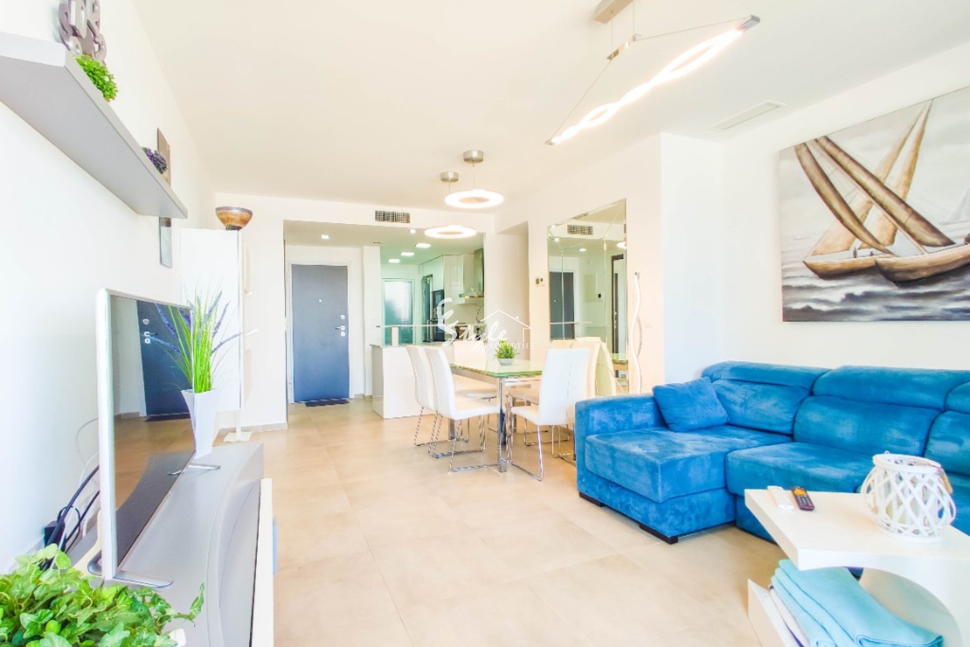 Este nuevo apartamento tiene una amplia terraza y vistas panorámicas al mar. El apartamento tiene 2 dormitorios con camas grandes, 2 baños, sala de estar con sofá cama, cocina.