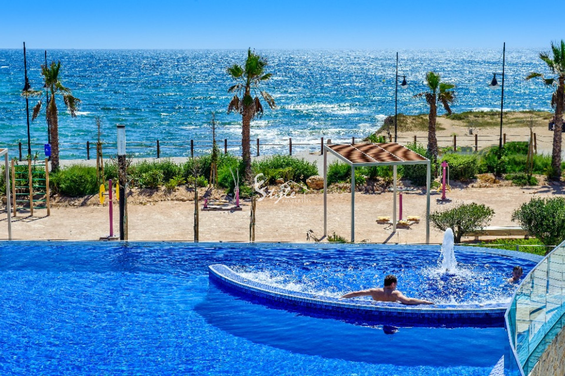 Ofrecemos en alquiler impresionantes apartamentos en primera línea de mar con vistas panorámicas al mar y piscinas. Los apartamentos están ubicados en un complejo residencial de élite cerrado Sea Senses con piscinas, gimnasio, saunas, campos deportivos, parque infantil, bar y cafetería.