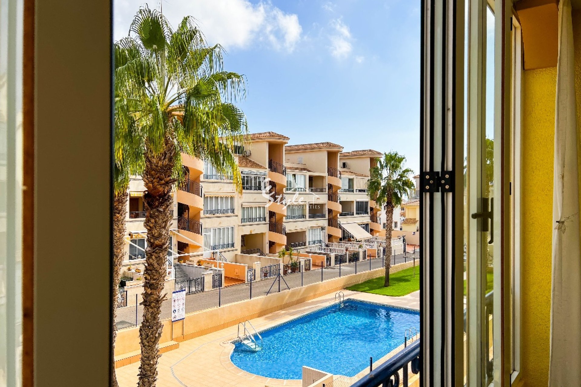 Apartamento en venta en La Ciñuelica area con una terraza soleada y vistas a la piscina en Punta Prima, Costa Blanca, España