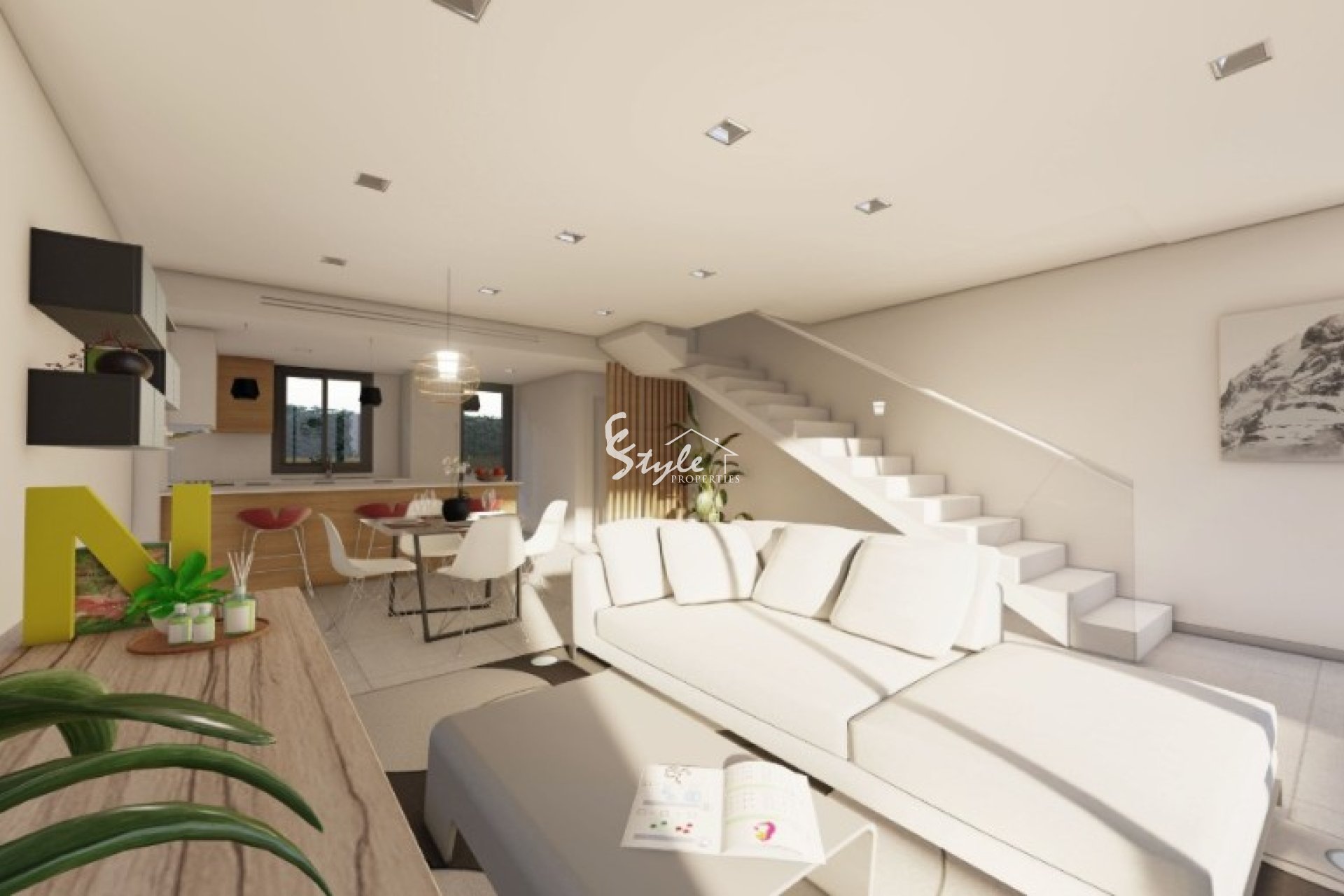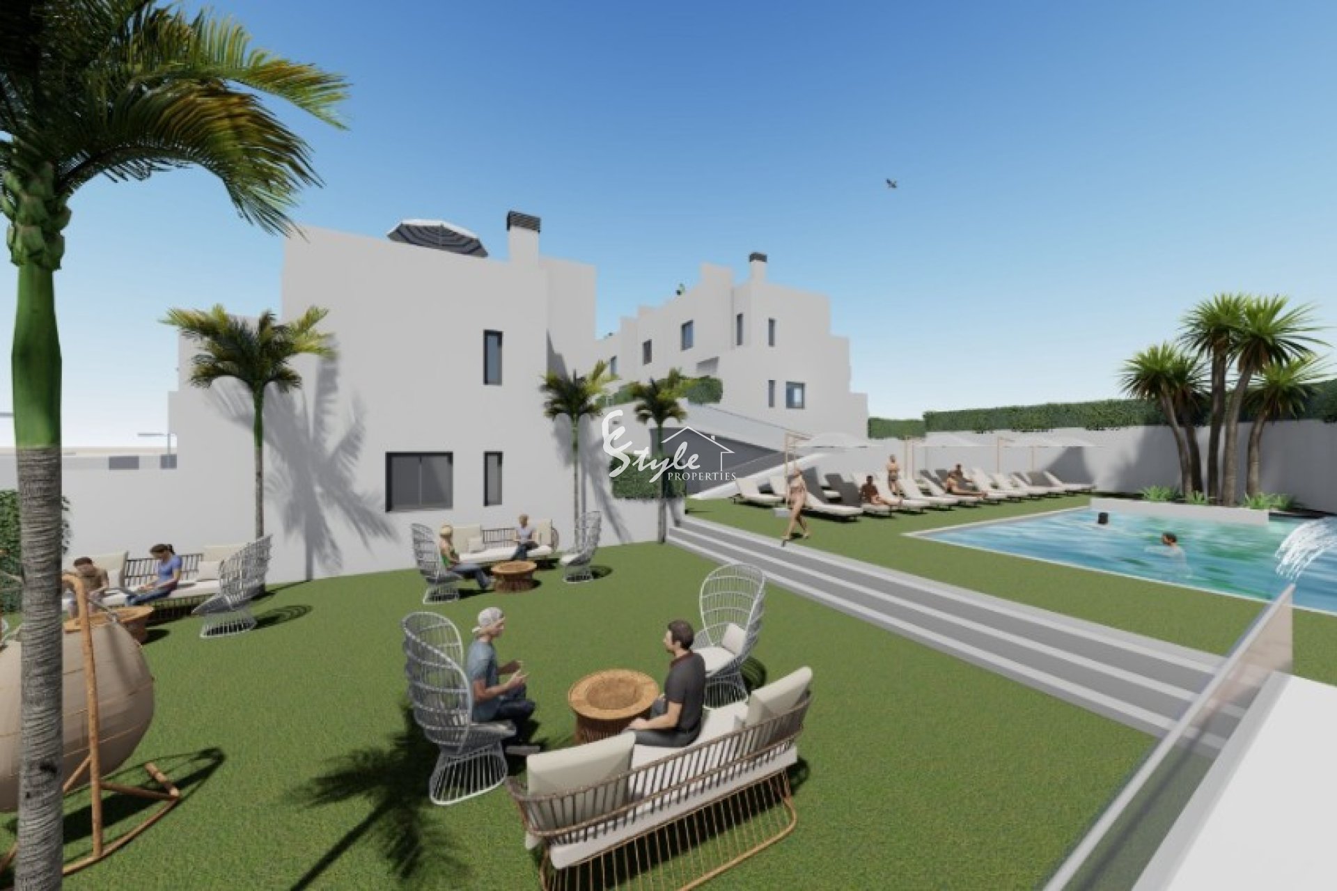 The residential complex consists of townhouses with 2 or 3 bedrooms, 2 bathrooms, spacious living-room, kitchen, solarium, terrace and garden. Residencial with communal pool..