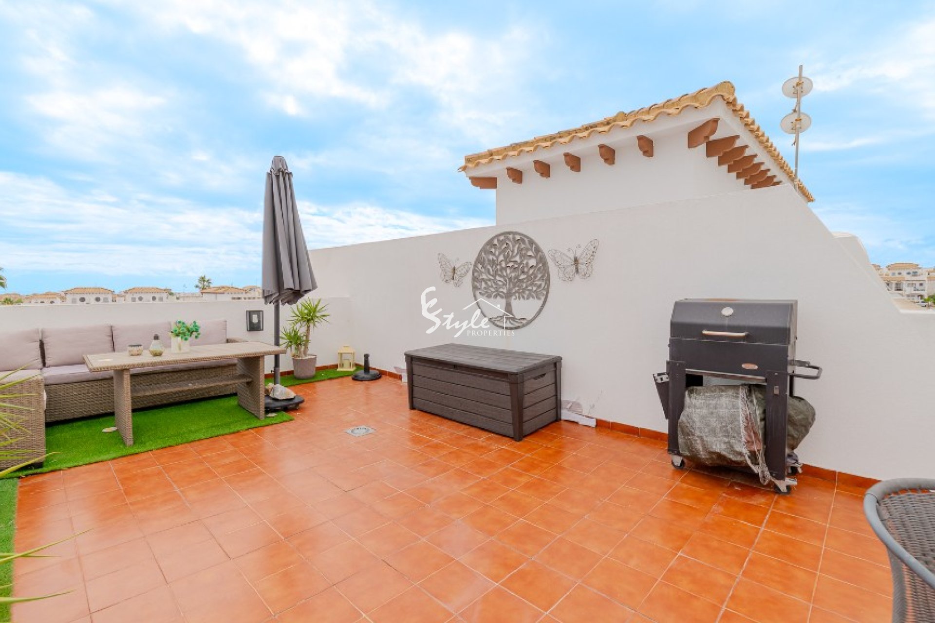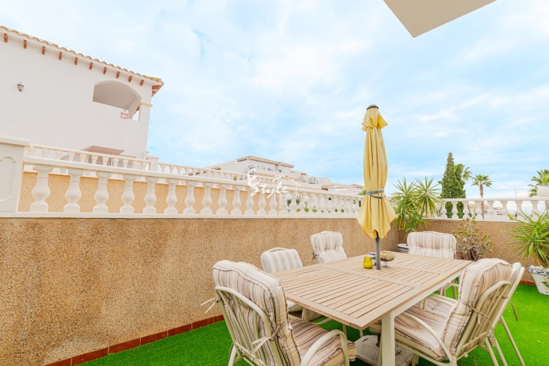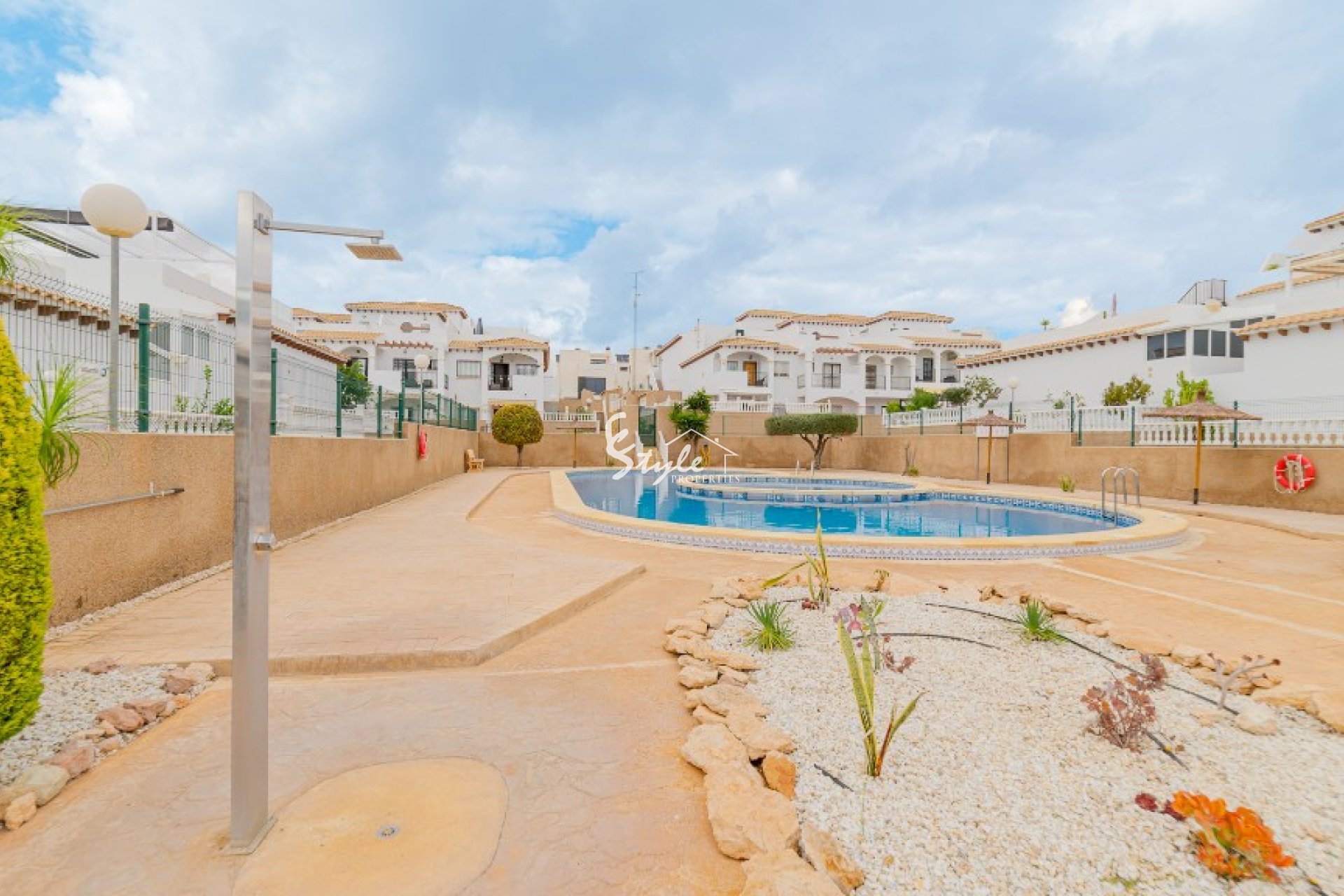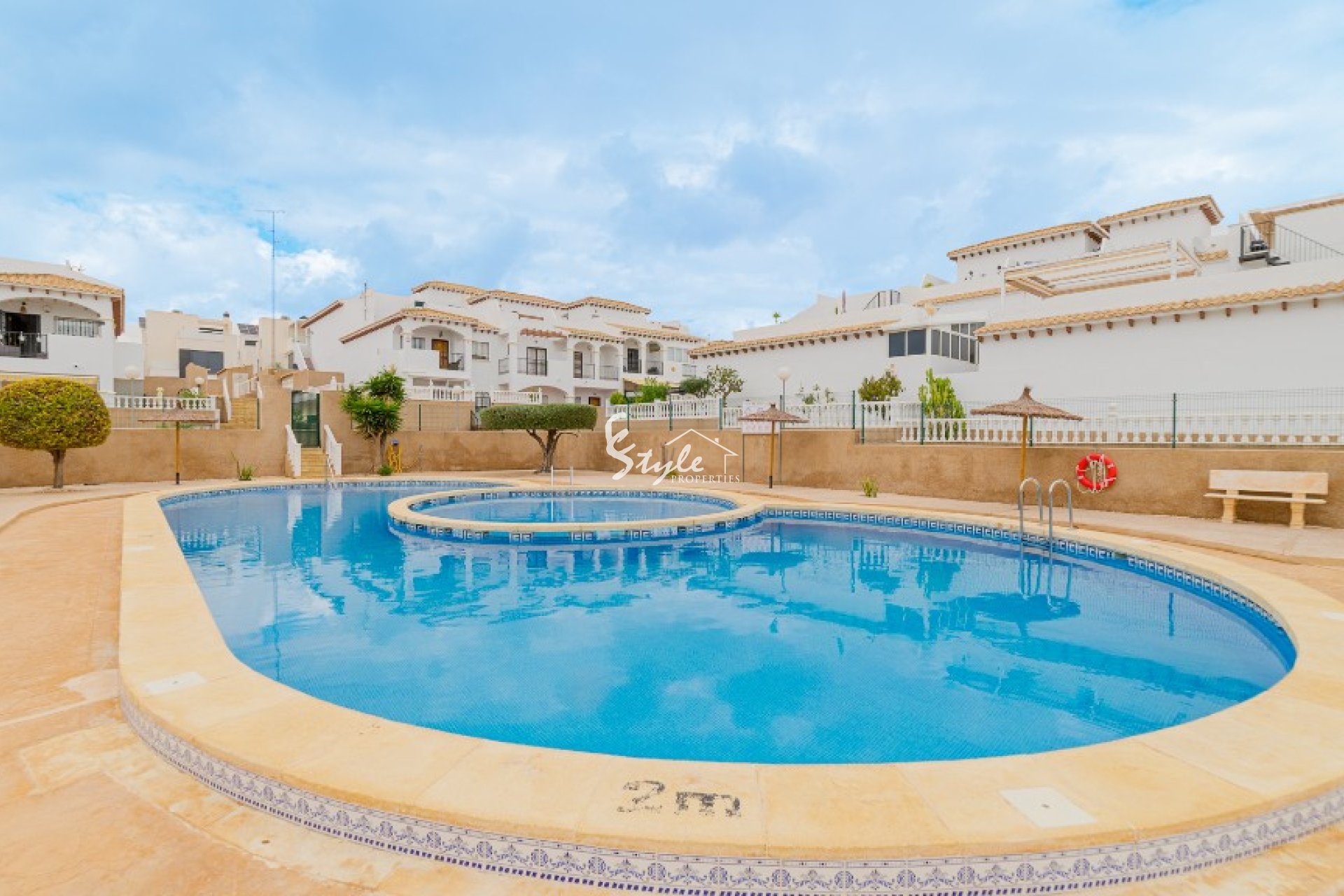 The location of the community is more than perfect - just couple of steps and you will find commercial centers, supermarkets, bars, restaurants, pharmacies, banks, bus stop, small shops and many other - everything is within a walking distance. Just a couple of minutes to the cleanest beaches of Orihuela Costa, which are awarded by Blue Flag from year to year. The commercial center La Zenia Boulevard is within a short drive, as well the famous golf courses of Villamartin, Las Colinas and Las Ramblas.