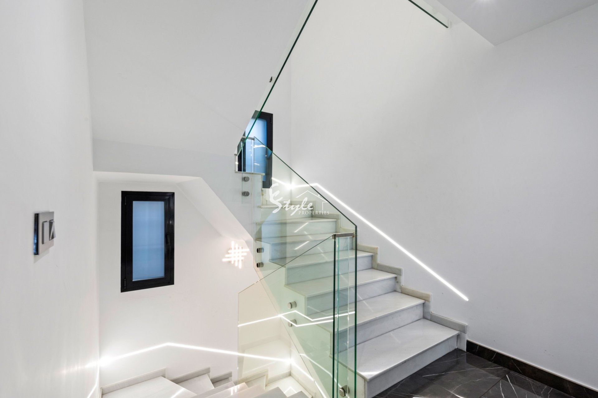 The villa is equipped with air condition (hot/cold) throughout, central heating on gas, smart-home system and smart entrance door which can be opened with code or with keys. At the entrance you also have a central switch to all the blinds in the house.