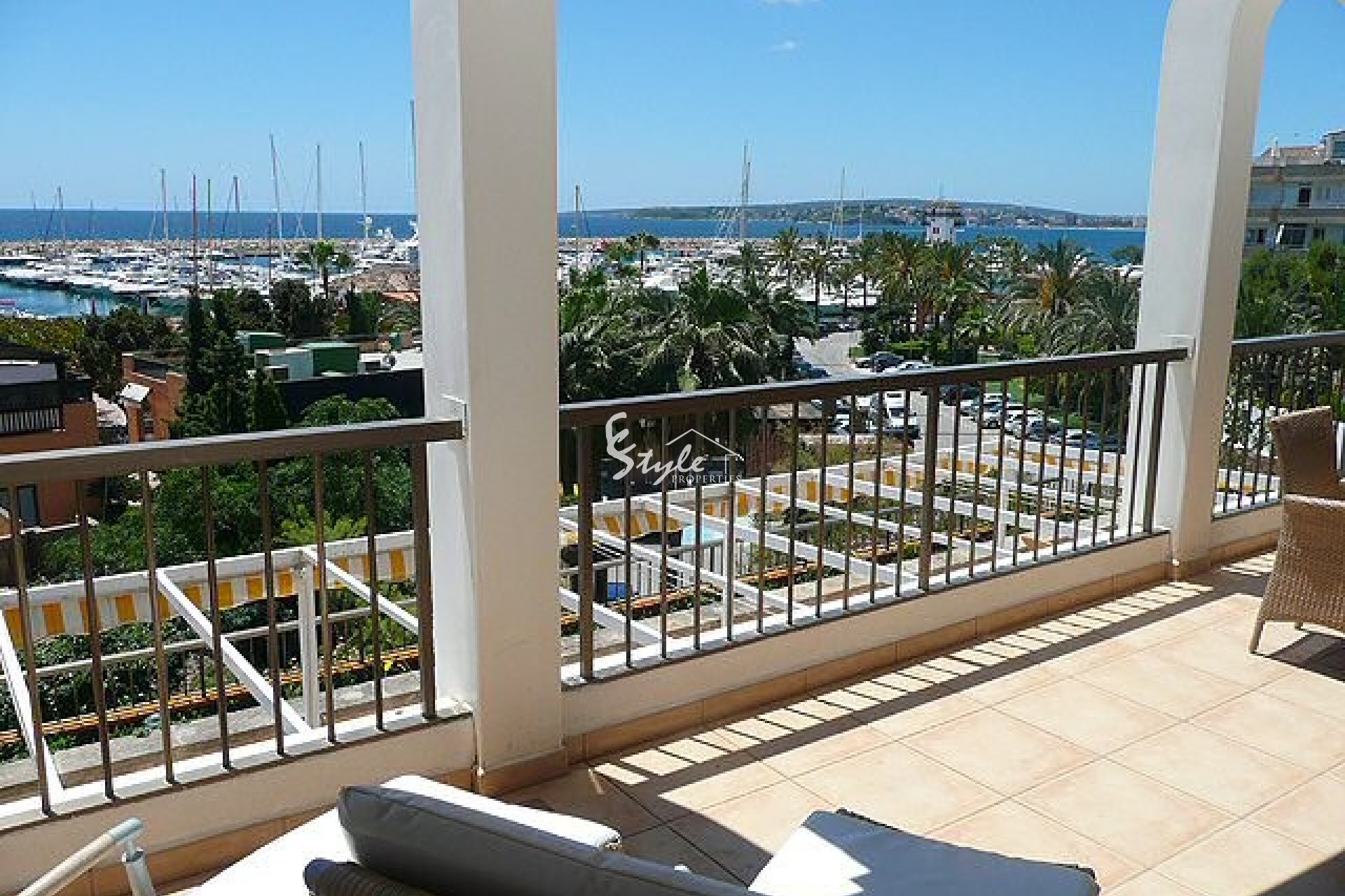 Spacious frontline, south facing, apartment in this highly sought-after community with great sea views and overlooking Puerto Portals marina. Ideally located for the fashionable bars, restaurants, and boutiques and just a short stroll to the beach. The accommodation includes a large open plan main living/dining room and fully fitted kitchen with quality appliances leading to a spacious sun terrace.There are three double bedrooms all with fitted wardrobes and two bathrooms including the master suite with en-suite bathroom. Air conditioning (heat/cool) throughout, secure garage for one car, fabulous community swimming pool, bathing terraces and landscaped gardens. Direct access to the marina and main entrance just a short walk to Portals Nous village, Supermarkets, and all amenities.