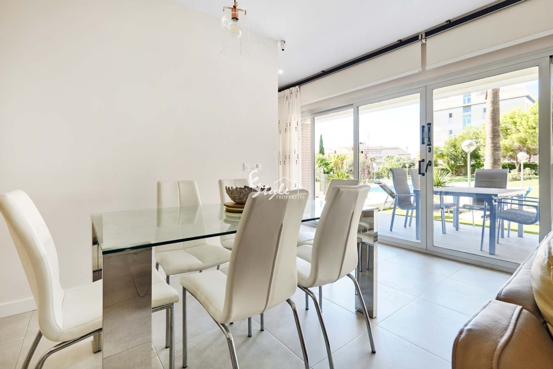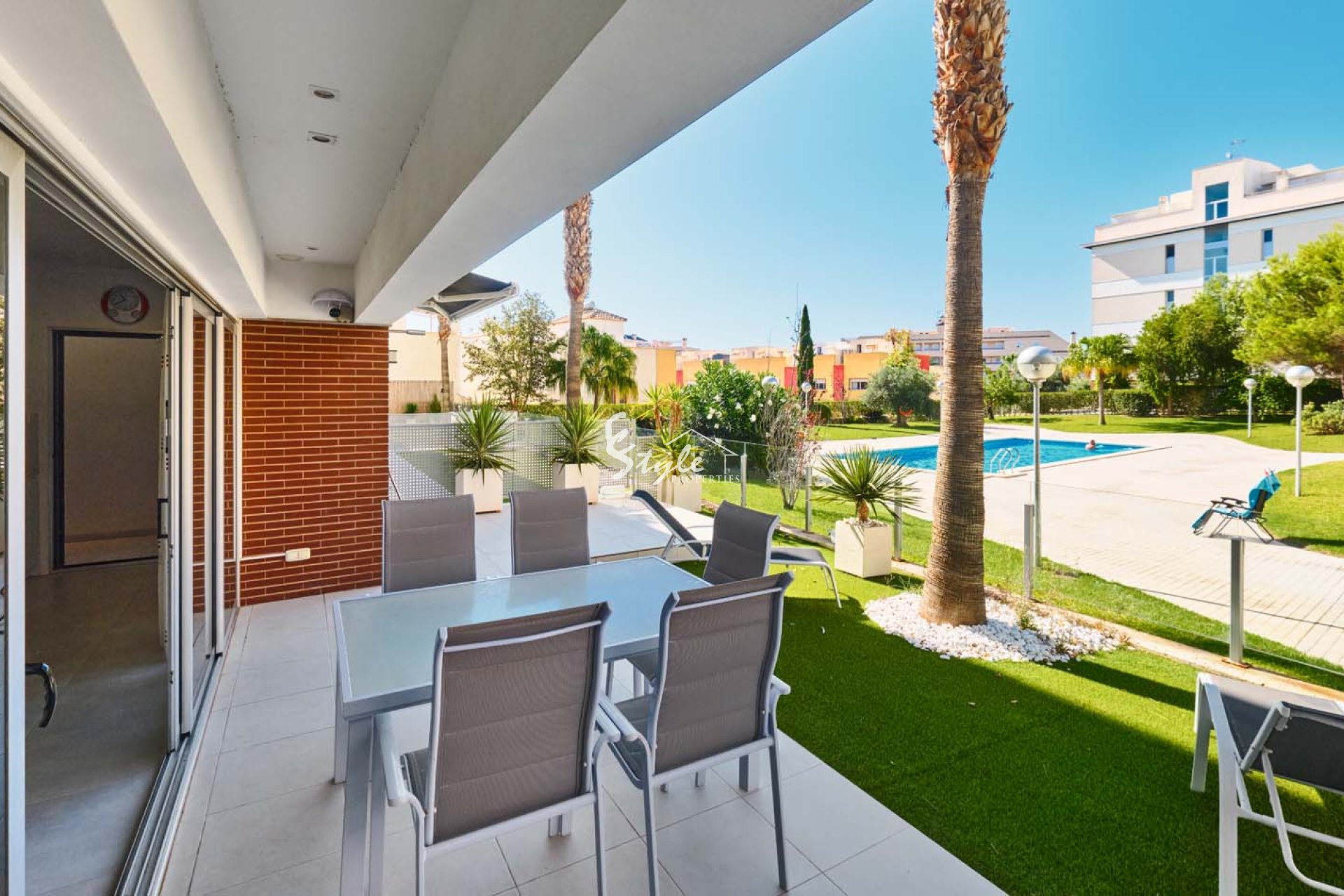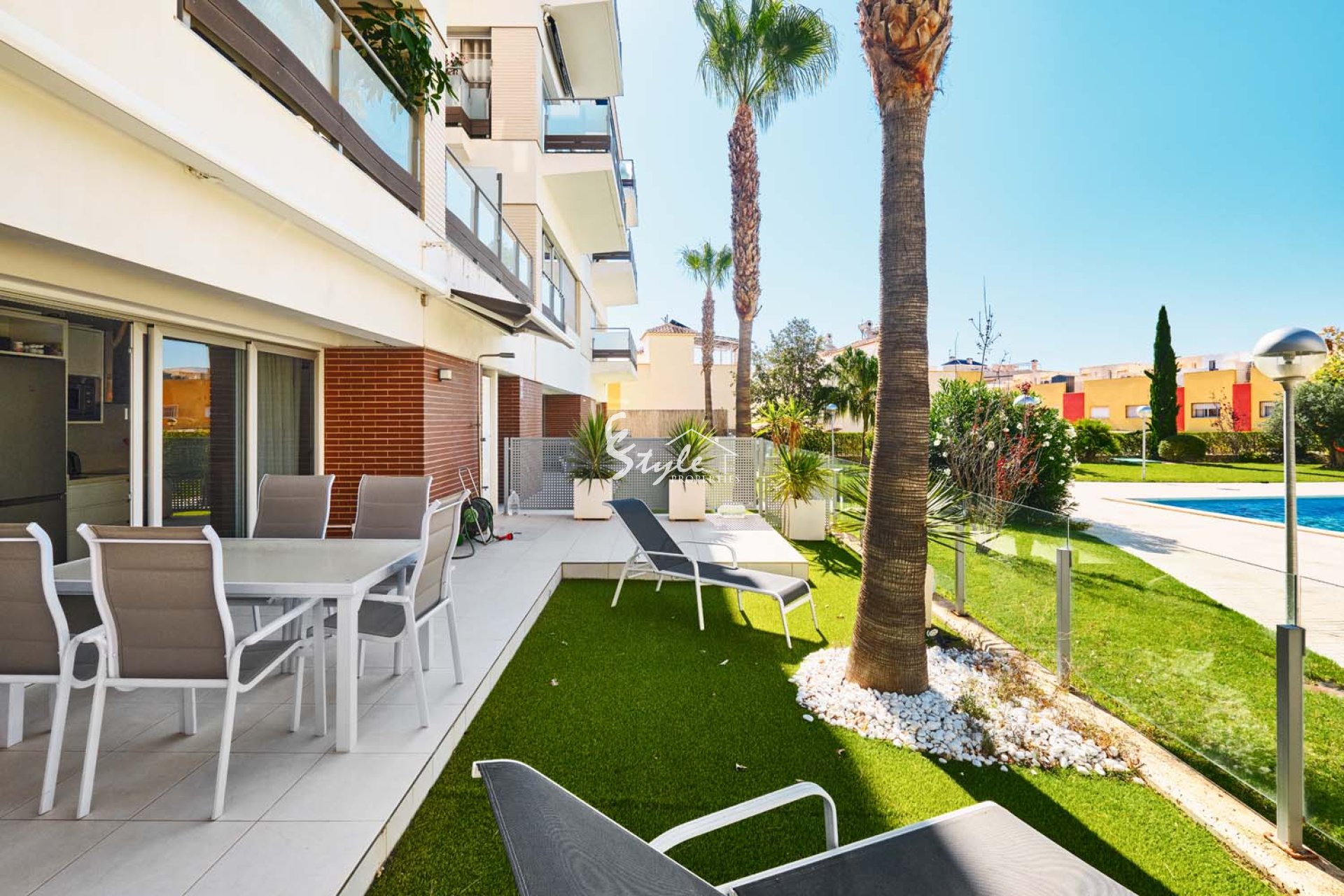 Pinar Properties are pleased to offer for sale this beautifully presented and modern 3 bedroom, 2 bathroom ground floor apartment with private garden in the sought after area of Los Dolses, located close to Villamartin plaza with an array of bars, restaurants and shops and also within walking distance to La Zenia Boulevard shopping centre. The apartment is situated overlooking the communal pool and gardens, it is a gated community with parking and only 3km from the coast which boast stunning blue flag beaches.