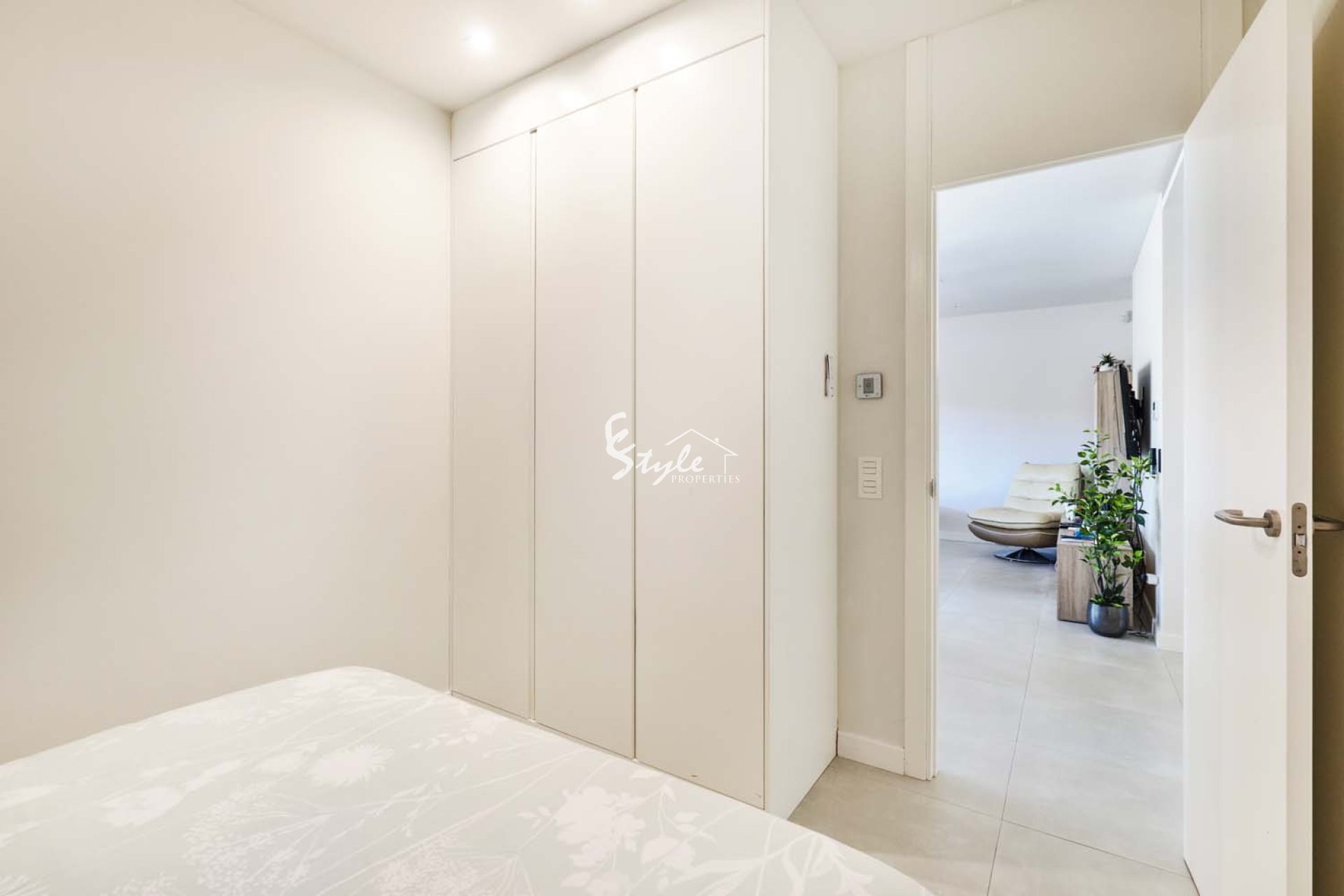 Entering into the apartment via the front door, you are greeted by a light and bright entrance hall, to the left hand side is the master bedroom which is a good sized room with built in wardrobes, there is a double height windows which floods the room with natural light and look out to a terrace area at the side of the apartment. The master bedroom also benefits from a beautiful en suite bathroom with walk in shower. Heading back to the entrance hallway leads to the second bathroom which also has a walk in shower and the second and third bedrooms both with built in wardrobes. The spacious open plan living/dining room is located at the end of the hallway, this space benefits from large sliding patio doors which give lots of natural light but also connect the inside with the terrace, meaning the lovely views can be enjoyed from the living room too. The kitchen is located to the left of the living room it is fully fitted with modern units and there is a door leading out to that side terrace.