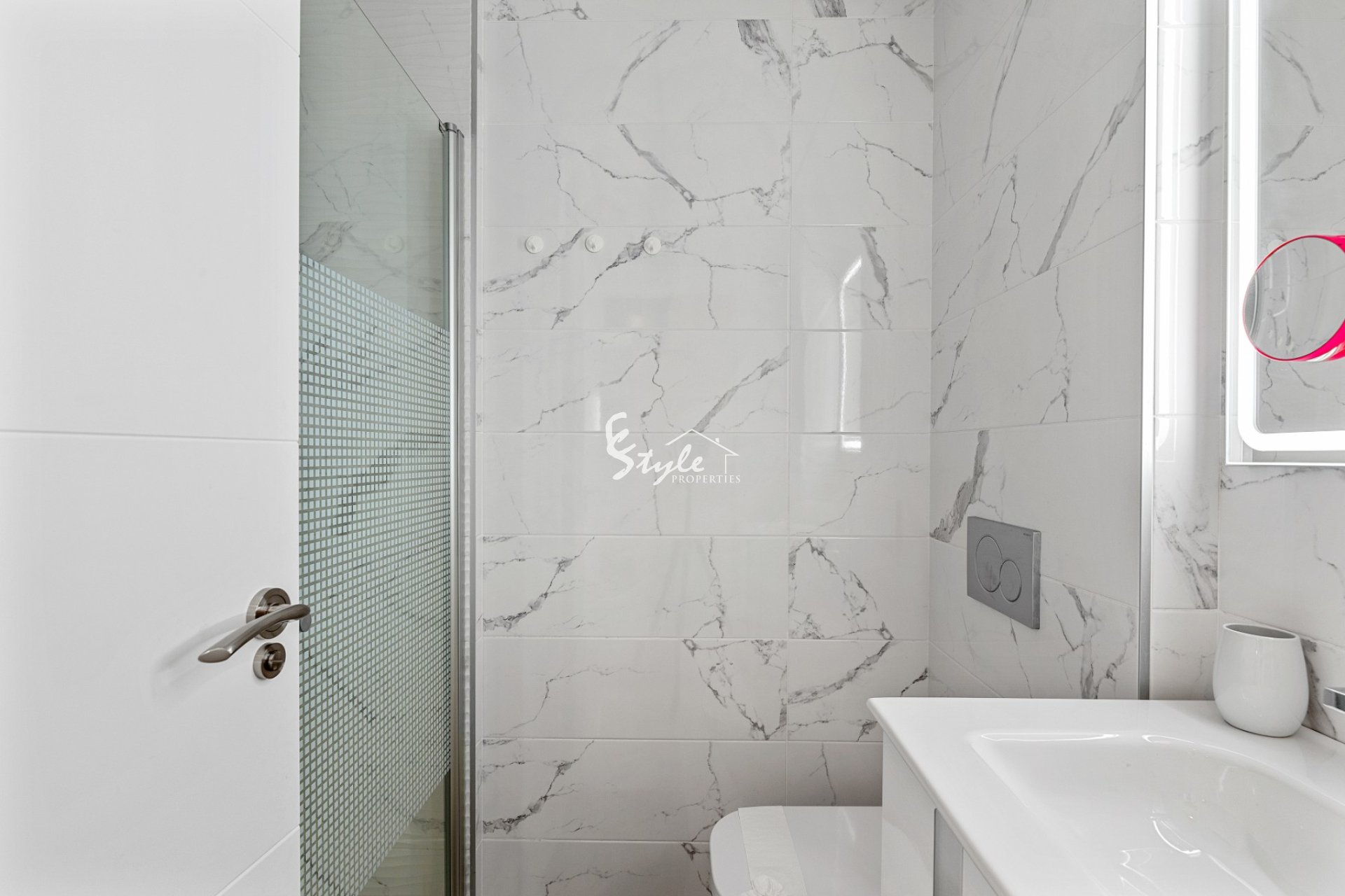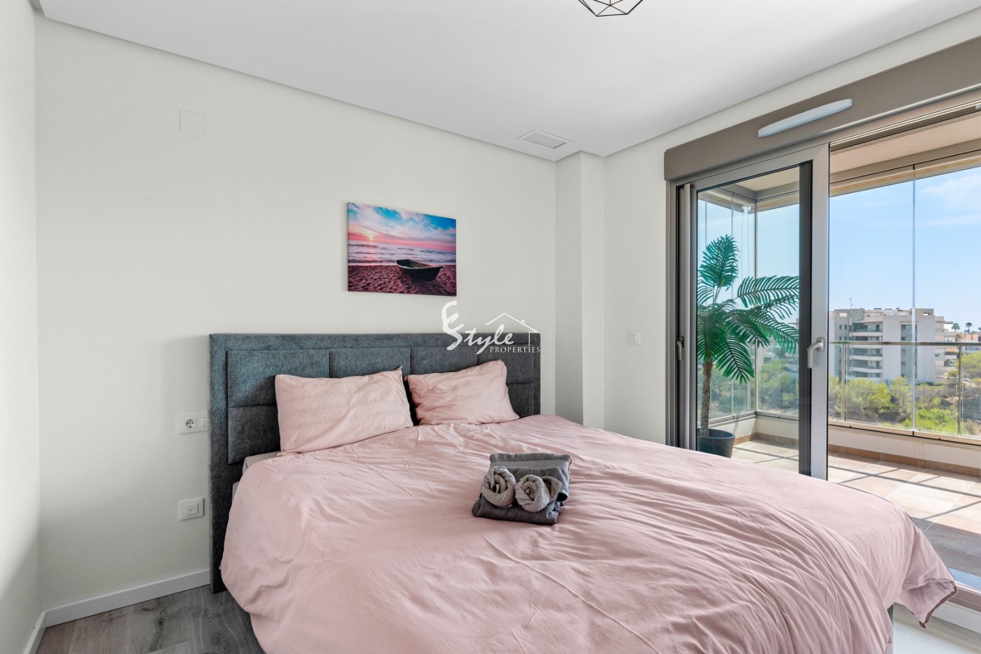 We are proud to present this apartment in the sought after "Green Hills", located just above La Zenia. Here we have perhaps the most beautiful apartment in the complex, a south-west facing penthouse apartment with 3 bedrooms, 2 delicate bathrooms with underfloor heating, a large glazed terrace outside the living room, as well as a private roof terrace with a pergola and shower - here you can enjoy a panoramic view of greenery and the Mediterranean sea. The apartment is sold with high-end furniture, white goods, air conditioning, electric blinds to the glazed terrace etc. There is private parking and a storage room in the underground garage.