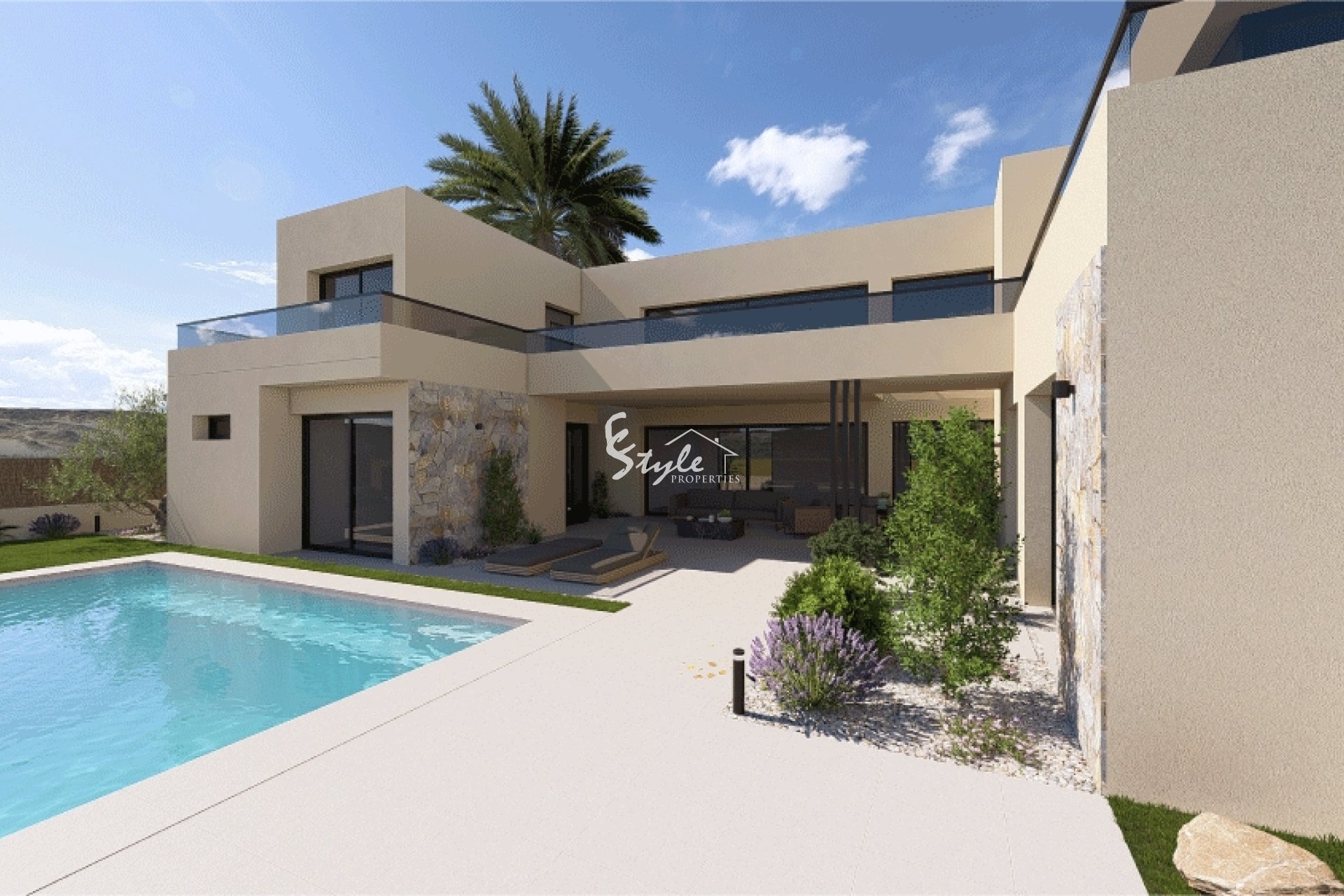 The villa boasts an exterior design that includes a private garden and a spacious terrace, perfect for enjoying the Mediterranean climate. Additionally, it features a private pool, ideal for relaxing and enjoying outdoor leisure moments. The landscaped areas complement the setting, offering a green space that enhances the natural beauty of the location.
