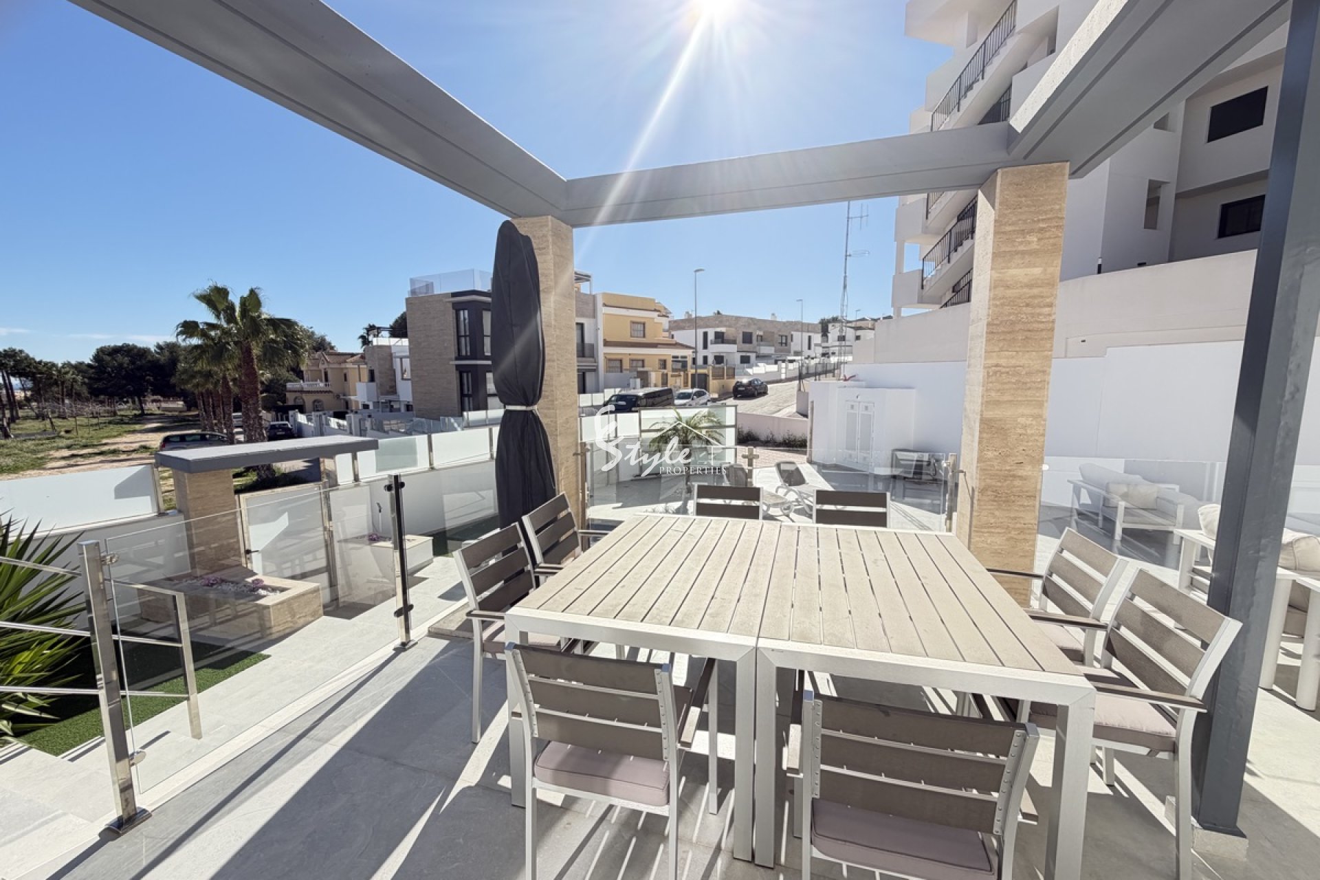 The upper floor comprises three spacious bedrooms, all with ample built-in wardrobe space, and access via staircase to a superb roof terrace — ideal for relaxing, entertaining, or enjoying panoramic views.