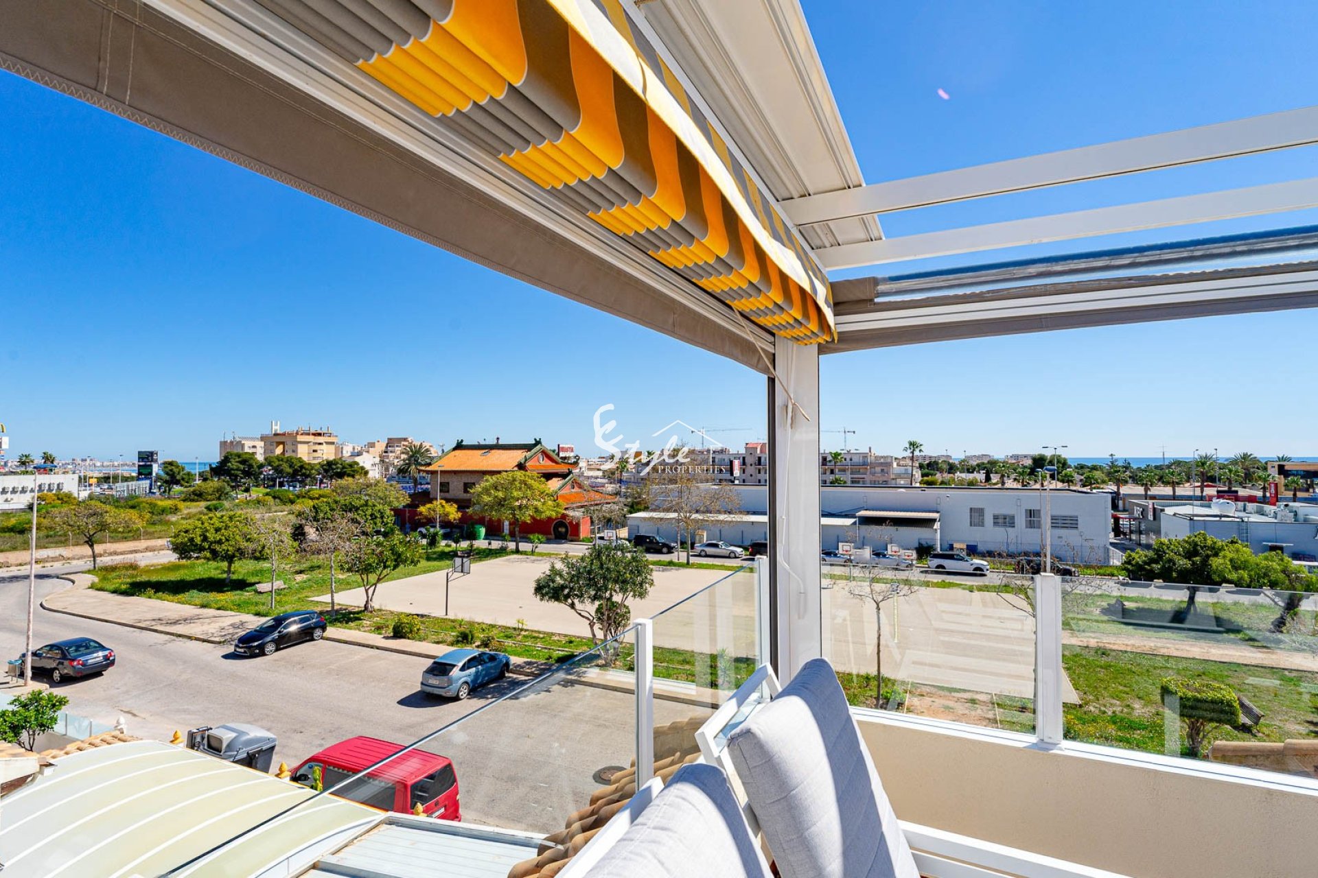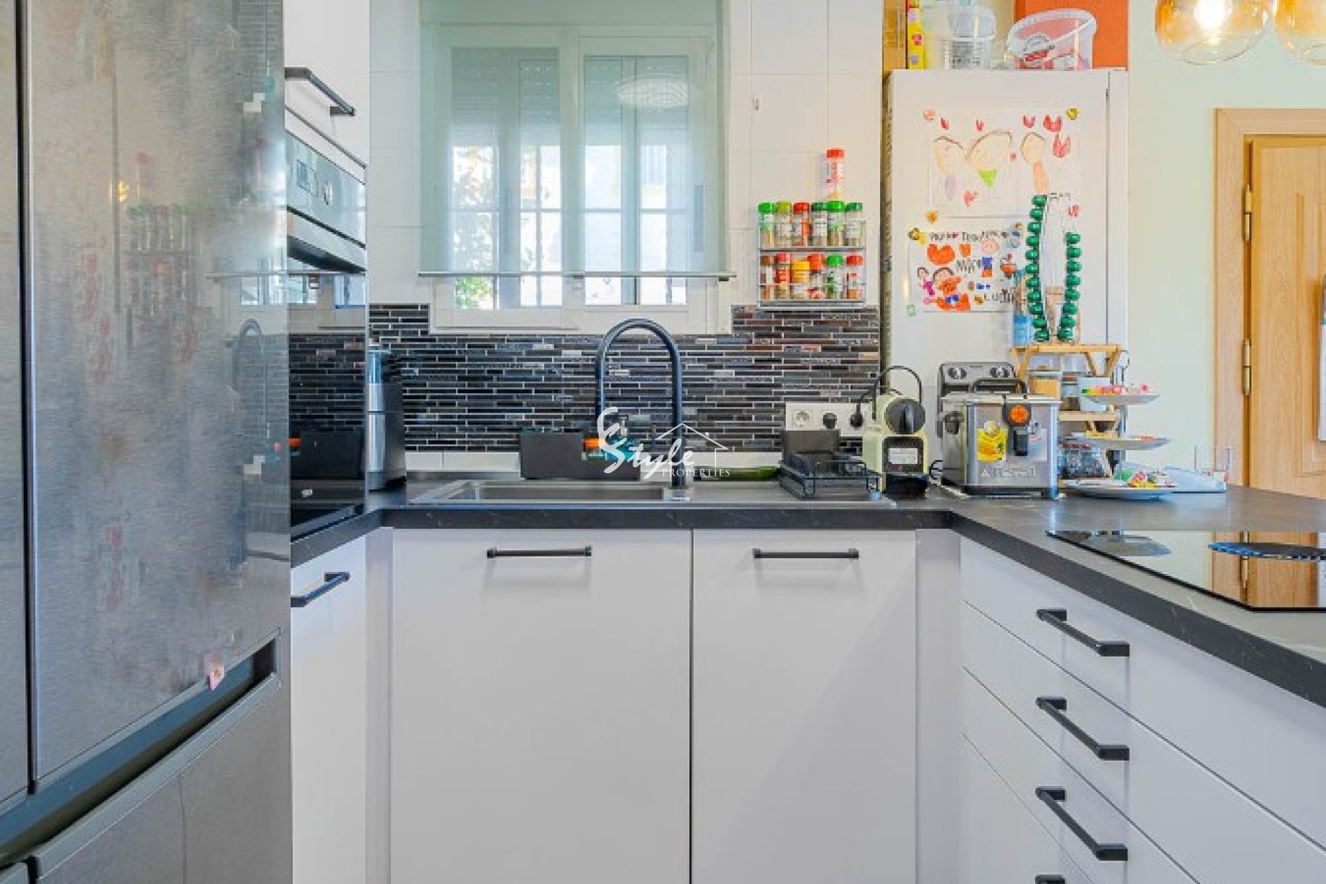 This stylish townhouse with modern renovation is located in the prestigious area of Punta Prima on the beautiful Costa Blanca, within walking distance to the sea and the beaches of Orihuela Costa. The area is well known for its developed infrastructure, pleasant atmosphere, and proximity to all essential amenities, including restaurants, shops, pharmacies, and scenic walking areas, making it perfect for both permanent living and holidays.