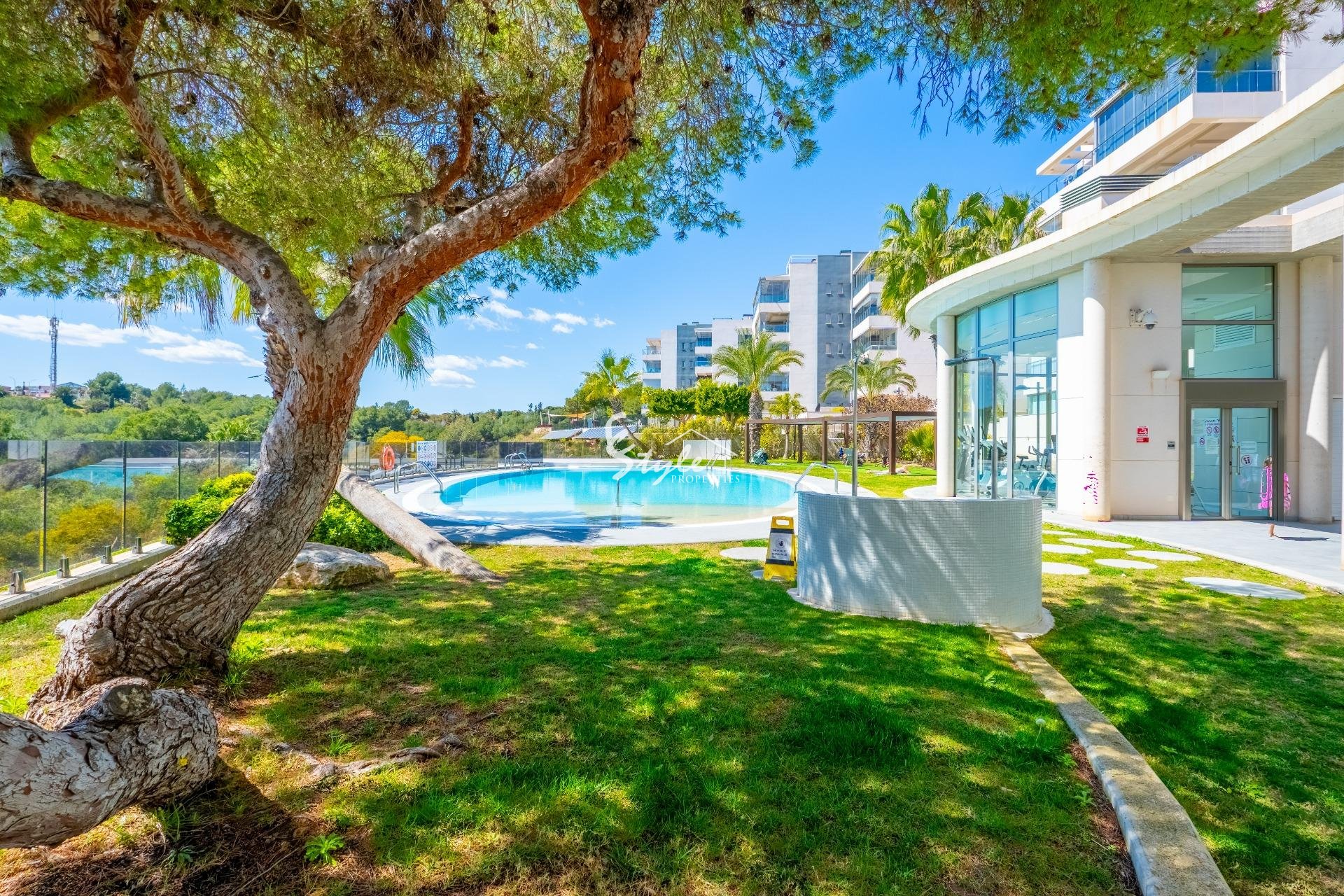 We present this modern apartment located in the exclusive Green Hills Residential, a luxurious recently built complex featuring a sauna, children's areas, a gym, and a swimming pool surrounded by spacious green areas.~~This is a resale new-build property in excellent condition, ready to move into. Located in the prestigious area of Orihuela Costa, one of the most sought-after locations, it is ideal for enjoying the Mediterranean climate, tranquility, and an active, healthy lifestyle.~~The property stands out for its comfortable and functional layout, as well as its great brightness. One of its main highlights is its spacious terrace, which features a glazed area with air conditioning and a relaxation space, perfect for year-round use, as well as an open outdoor area with excellent sunny orientation, ideal for sunbathing at any time of the year.~~The apartment includes a modern, fully furnished living room, a fully equipped designer kitchen in light tones, 3 bedrooms with built-in wardrobes, and 2 full bathrooms. In addition, it comes with a parking space, providing convenience and security for your vehicle.~~Located in a quiet and safe area, it offers excellent proximity to all kinds of services: shops, supermarkets, schools, and leisure areas. Just a few minutes away is Zenia Boulevard, the largest shopping center in the area. Nearby beaches such as La Zenia and Playa Flamenca are also major attractions.~~For leisure and sports, the proximity to Villamartín Golf, one of the most renowned golf courses in the area, stands out, along with other sports facilities.~~With more than 300 days of sunshine per year and a mild climate, this location allows you to enjoy outdoor activities all year round, such as seaside walks, water sports, golf, and an active social life.~~An ideal option as a permanent residence, holiday home, or investment on the Costa Blanca.~~Taxes (10%, reduced rates of 8% and 6%)~Notary fees (approximately €800–€1300)~Land Registry fees (approximately €300–€700)~Administrative/consulting fees (approximately €900–€1500)~NO ADDITIONAL REAL ESTATE AGENCY COMMISSION FEES