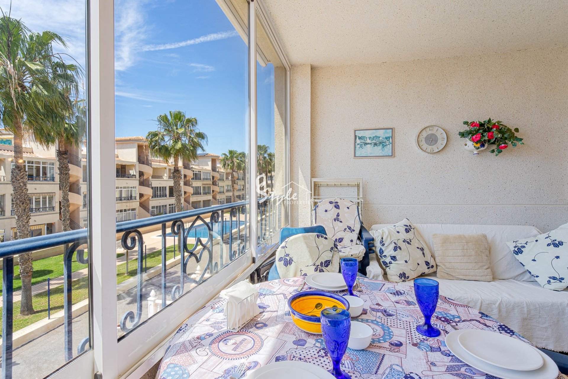 Corner 1st floor apartment with sea and pool views in Punta Prima, Costa Blanca