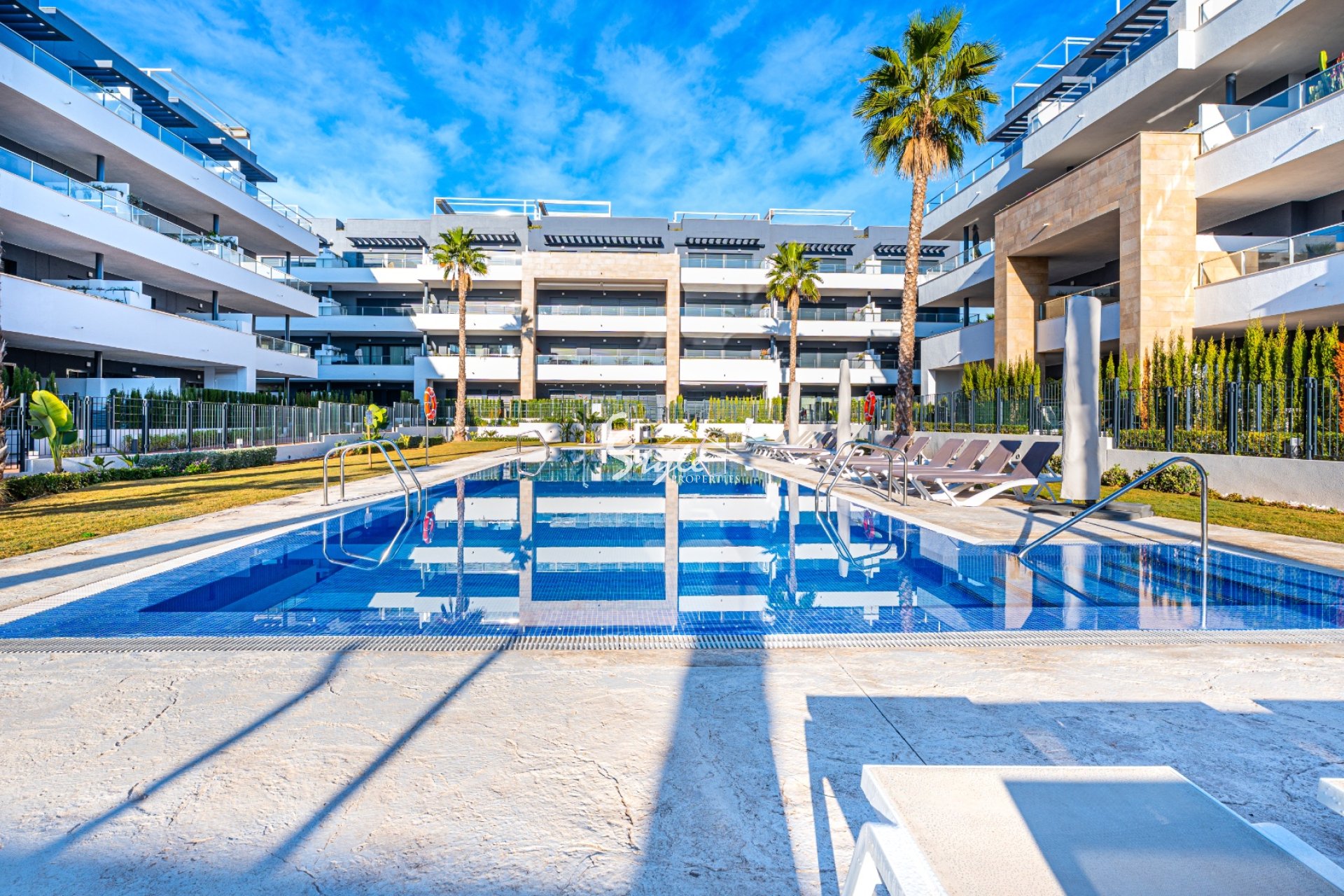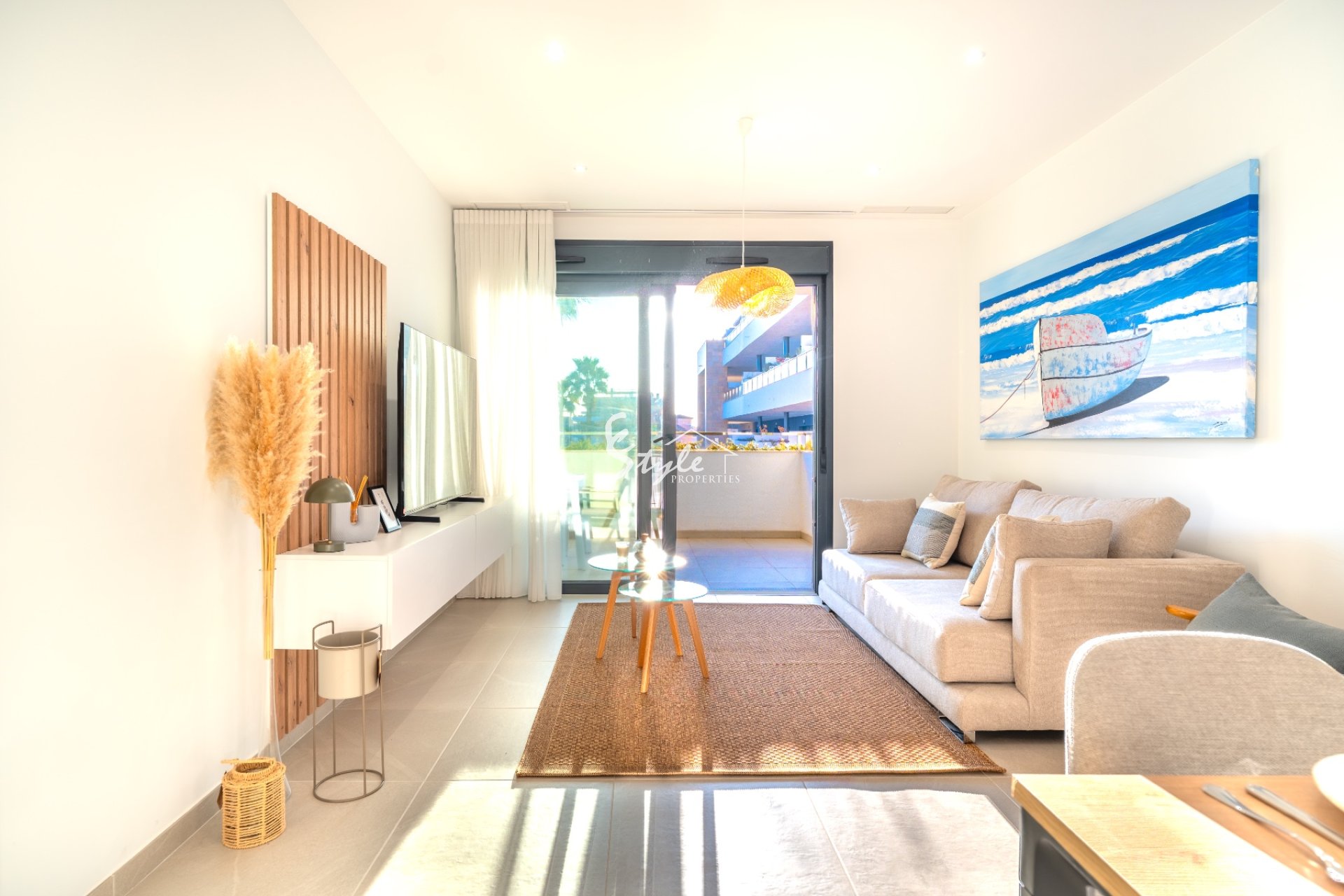 Modern 3-bedroom apartment with terrace, garage and storage room in Playa Flamenca, located in the prestigious residential complex Flamenca Village, just 600 meters from the beach and 350 meters from Zenia Boulevard.