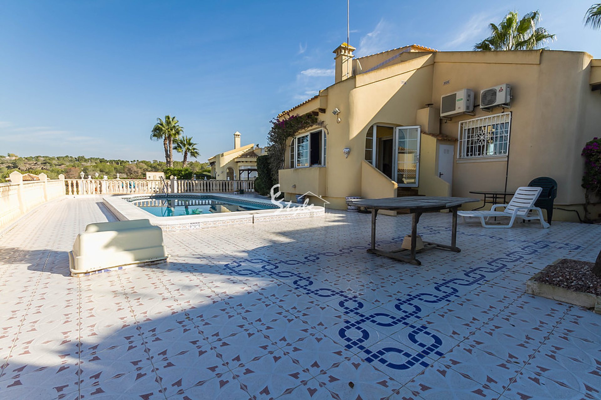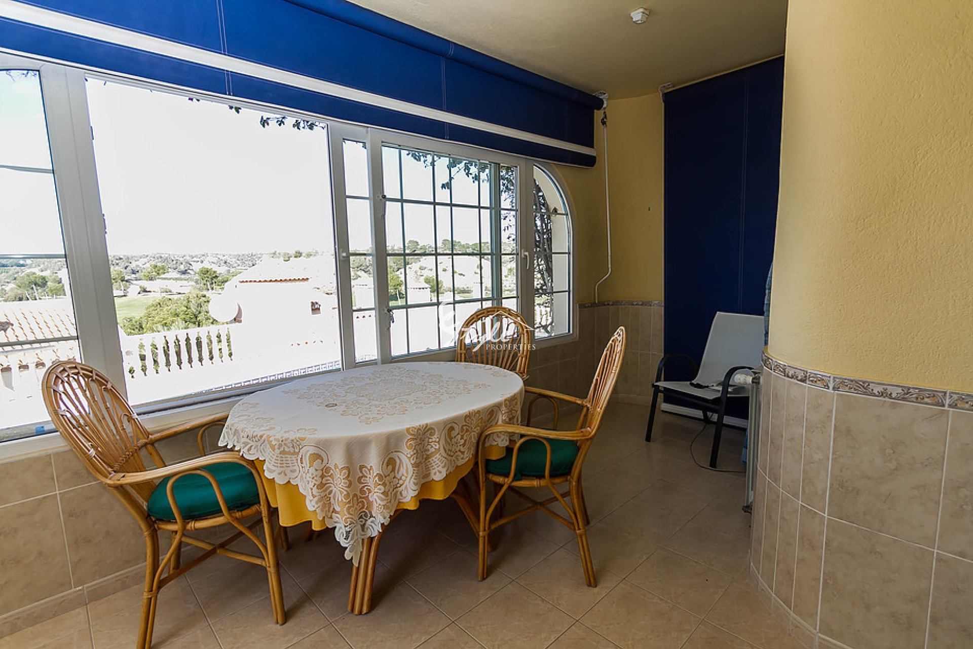 We offer a villa with pool, located in the prestigious area of Las Ramblas, in walking distance of the golf club and restaurants. The house has 4 bedrooms, 3 bathrooms, living room, kitchen, terrace, solarium, storage room and a garden with views of the golf course.