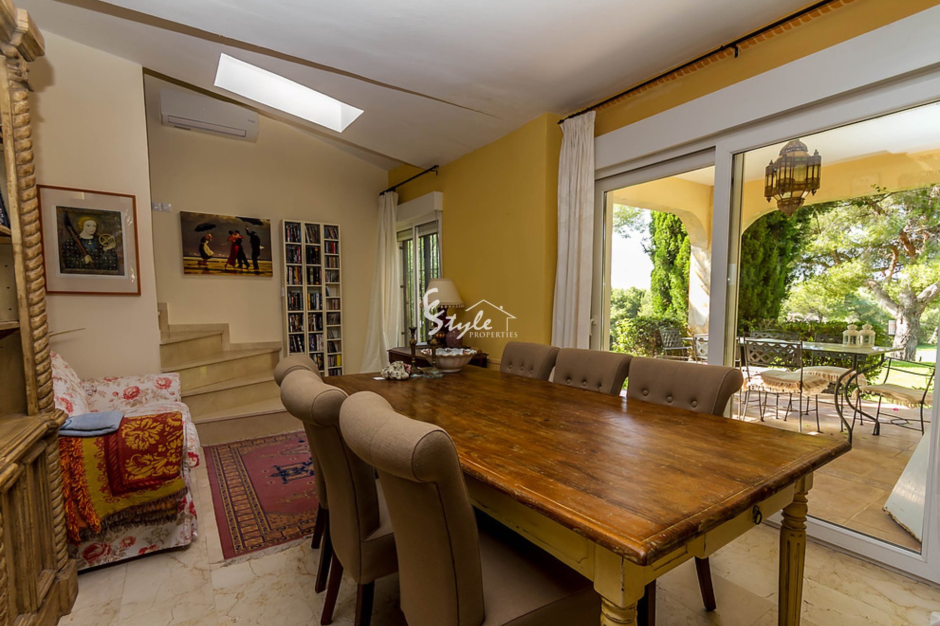 For sale a beautiful villa with a swimming pool and a large plot in the exclusive area of Las Ramblas golf course. The house has an area of 265 square meters, 4 bedrooms, 3 bathrooms, 2 living rooms, dining room, kitchen, utility room, terrace. Also it has gas, air conditioning, alarm system. It will be sold partly furnished.