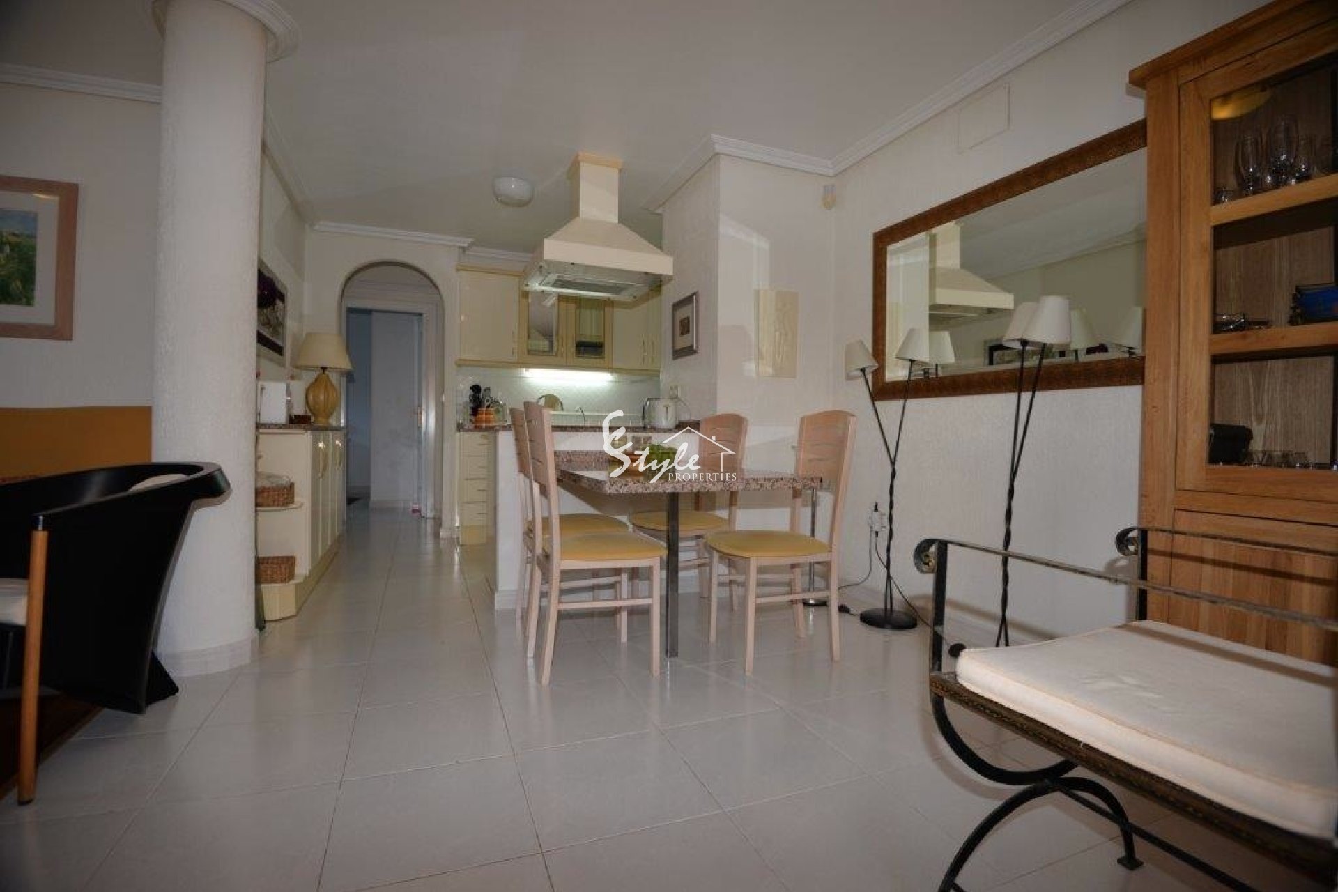 South-west facing ground floor apartment for sale in Playa Flamenca, Costa Blanca, Spain. It has 2 bedrooms, 1 bathroom, living room, kitchen, bathroom with the shower and large corner terrace with the sunshine all day. There is a very nice communal pool with gardens, the local amenities are in a short walking distance. It will be sold furnished.