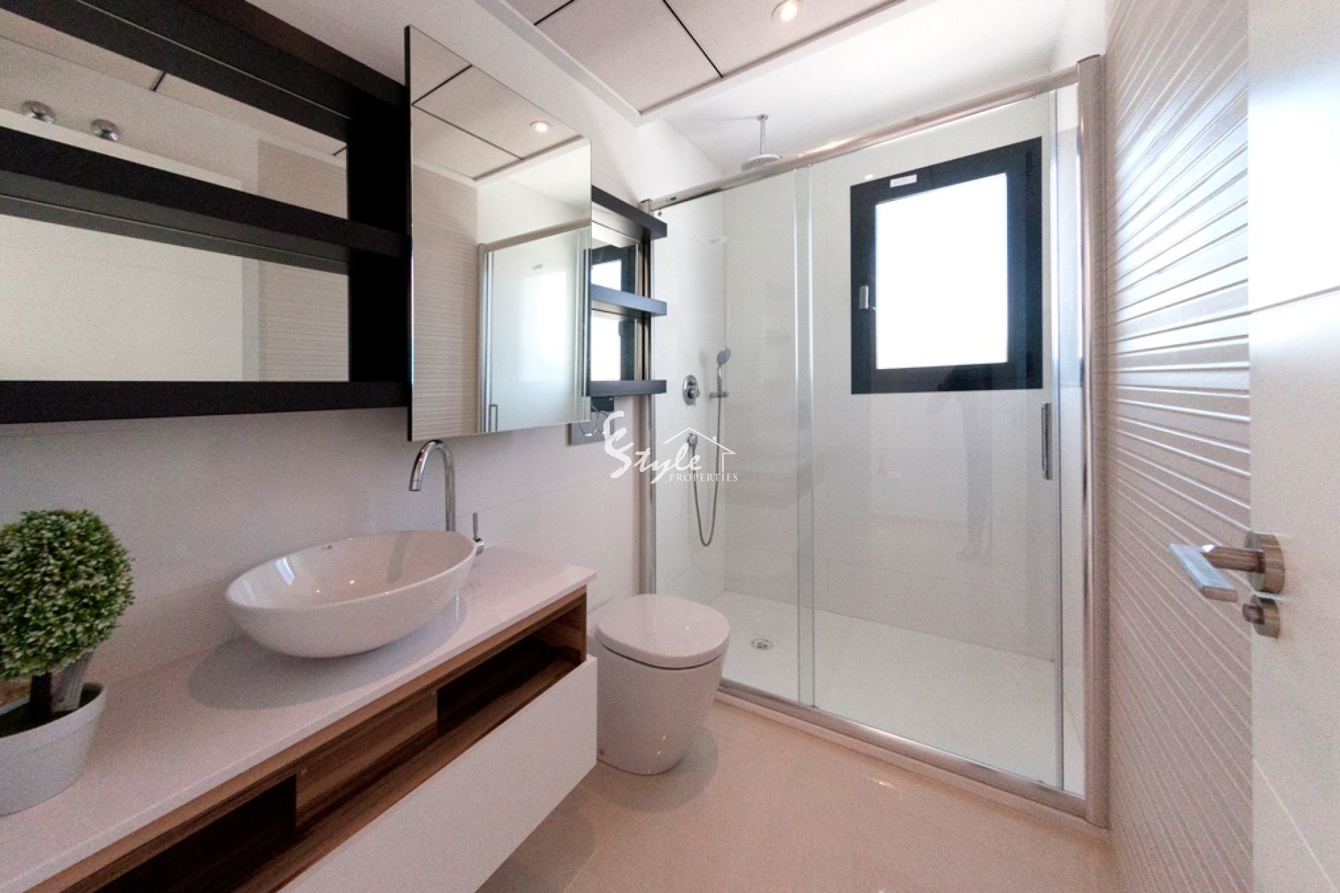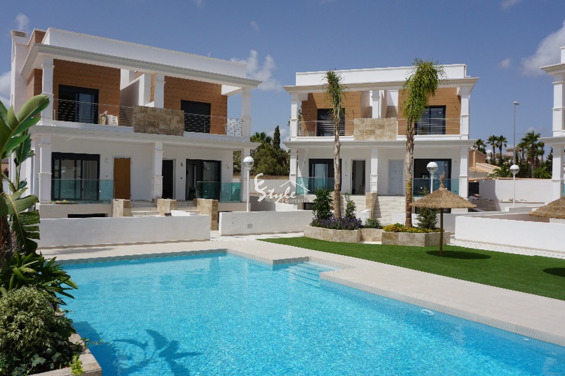 For sale new townhouse in a gated complex and large communal pool area. 5 bedrooms, 5 bathrooms, living area and kitchen, terrace, underbuild and a private solarium. All new build properties are overlooking the communal pool, have their private parking spaces and garden area as well.