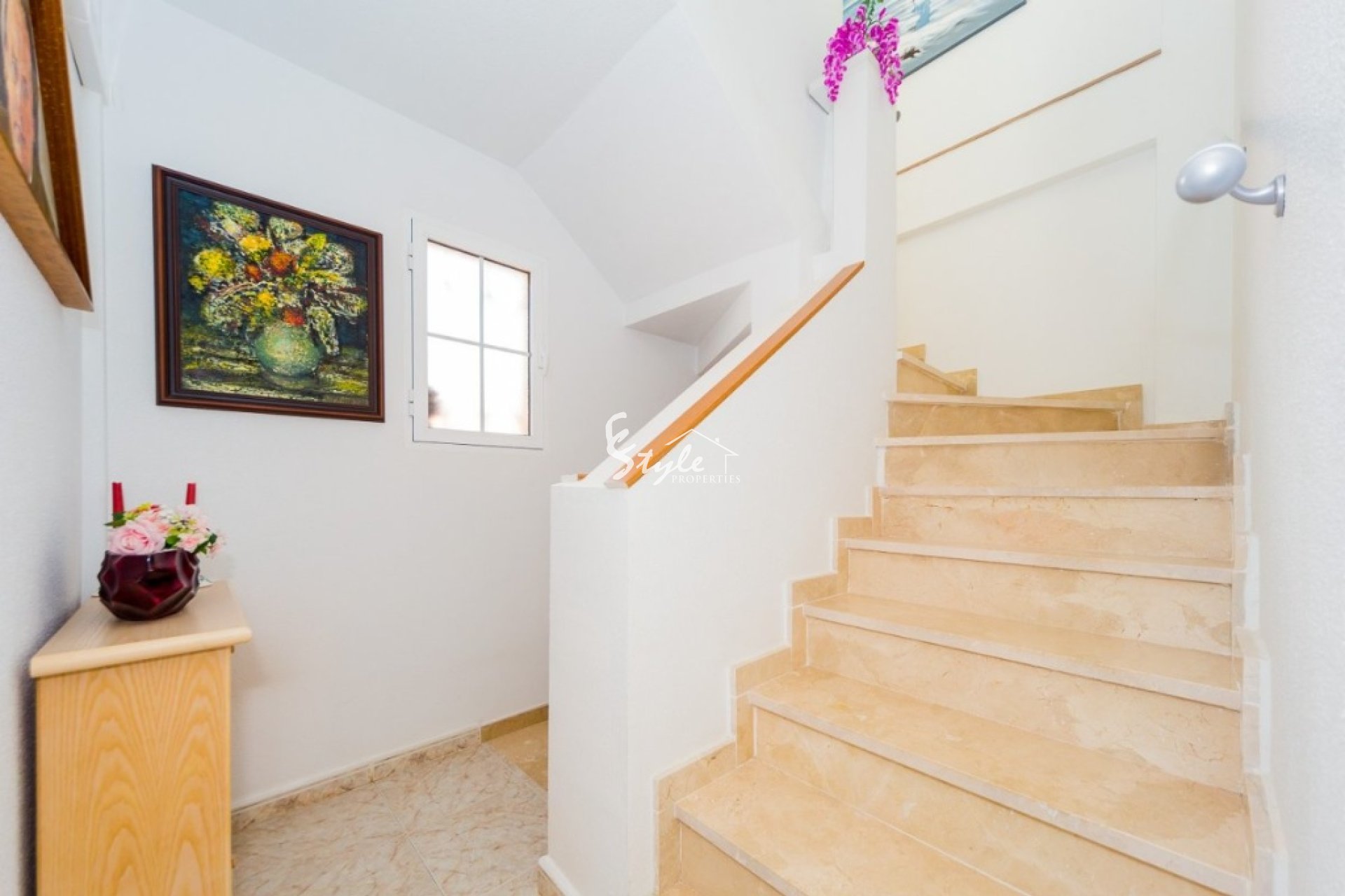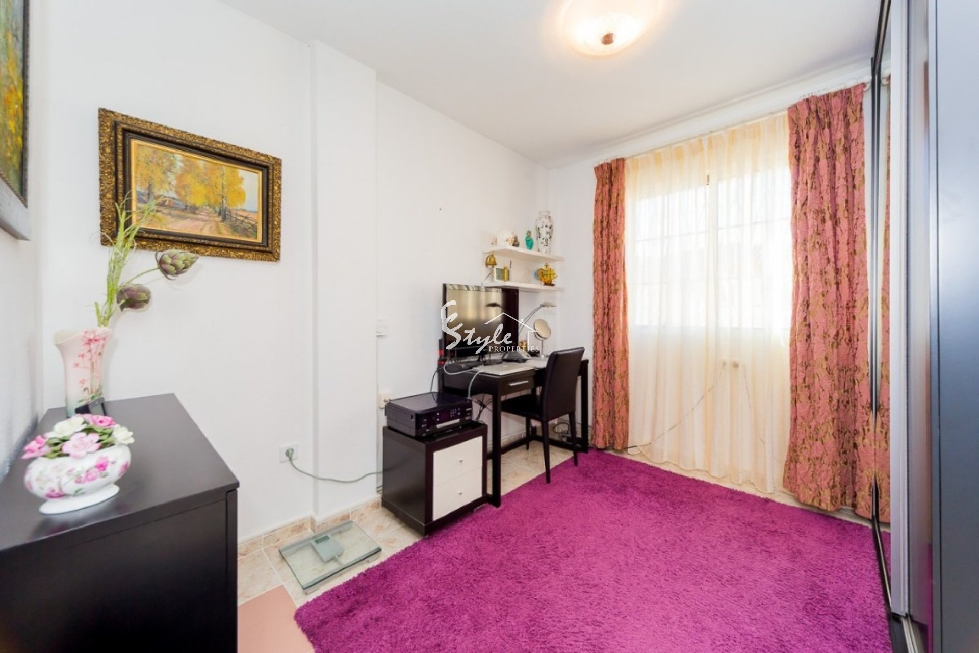 Villa like new of three floors with furniture and quality appliances. Built surface 111 m2, spacious living room with access to the porch, large kitchen with furniture and appliances, two bedrooms with wardrobes, the double with two areas adapted as a bedroom and as a small office and dressing room, two bathrooms, solarium, small plot with pool and parking. For sell furnished and with appliances, including air conditioning throughout the house. Ideal to live all year and spend holidays next to the beach. Cost effective seasonal rental.~~Beautiful villa in a classic style in a gated complex with two pools, 2004 year of construction. The little community fees.~~Quiet Playa Flamenca area near the huge CC "La Zenia, El Bulevard" with all services. Distance to the beach about 1.5 km.