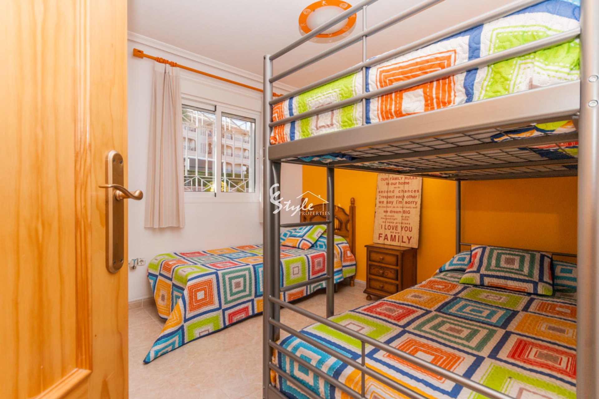 Within a luxury urbanization in Playa Flamenca , with a fenced and closed enclosure, with automatic access doors, with spacious and perfectly manicured gardens, with communal swimming pools, play areas for children, tennis and soccer courts, parks and other complements, and in turn, in an area a short distance from the commercial and leisure areas of the shopping center zenia boulevard, the municipal sports areas and the best beaches of Orihuela Costa, is this apartment very bright and in perfect condition conservation.