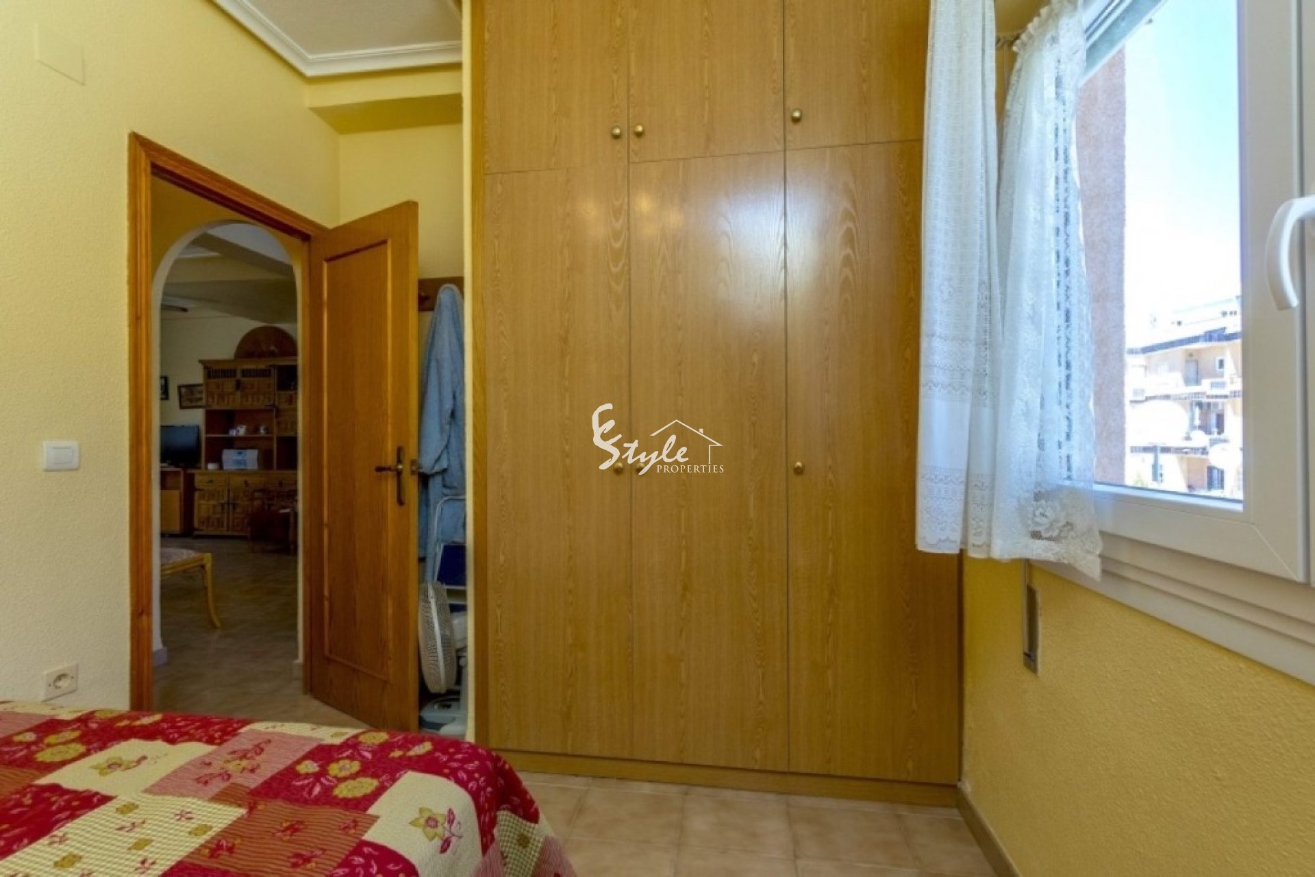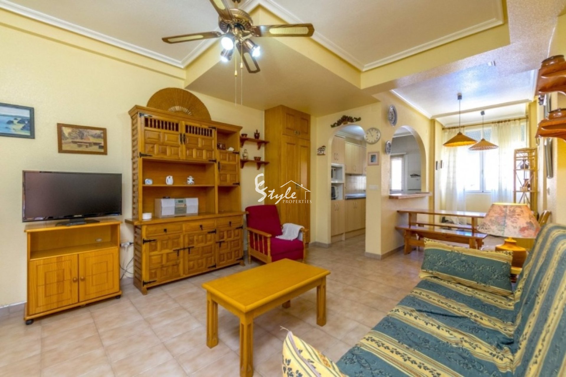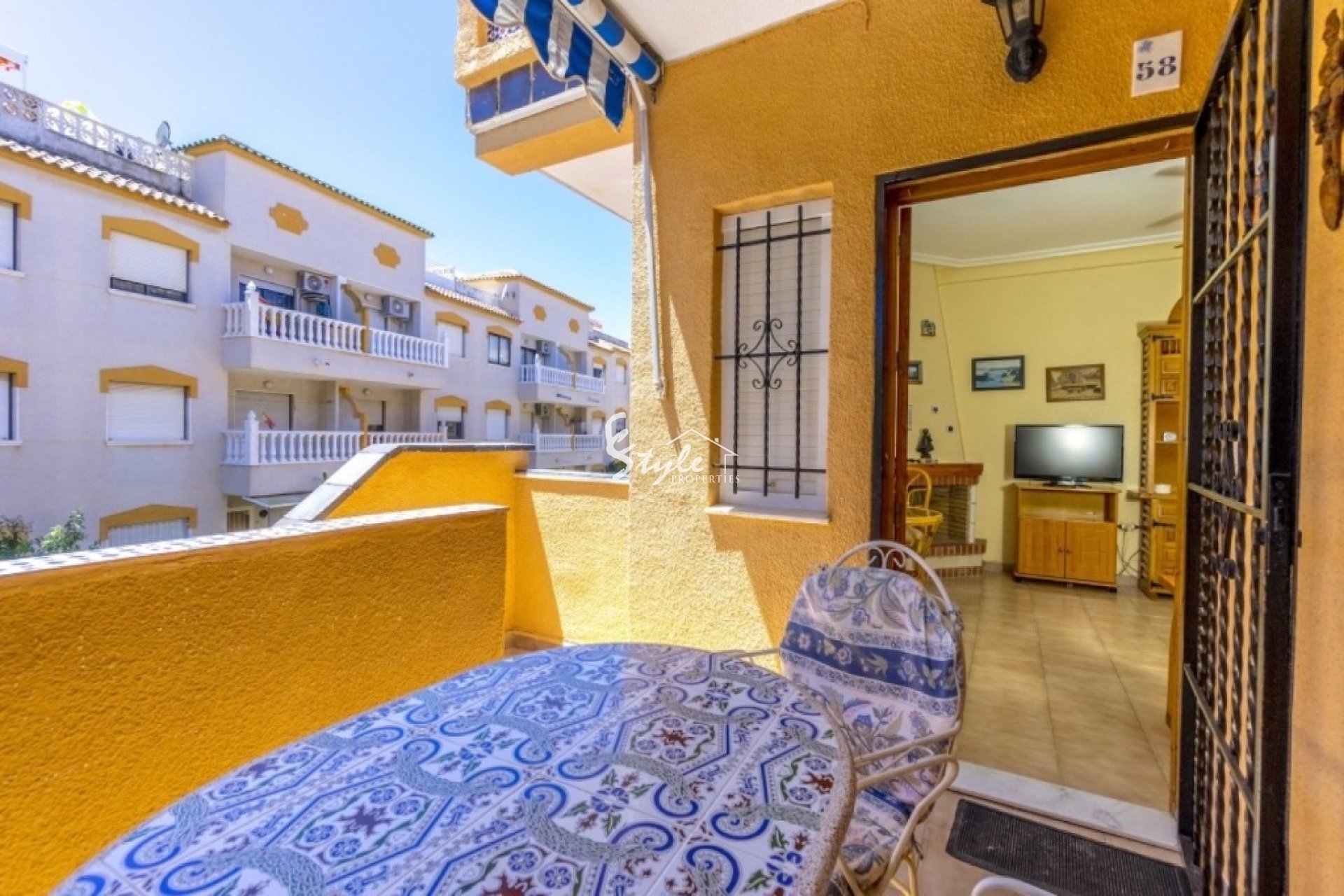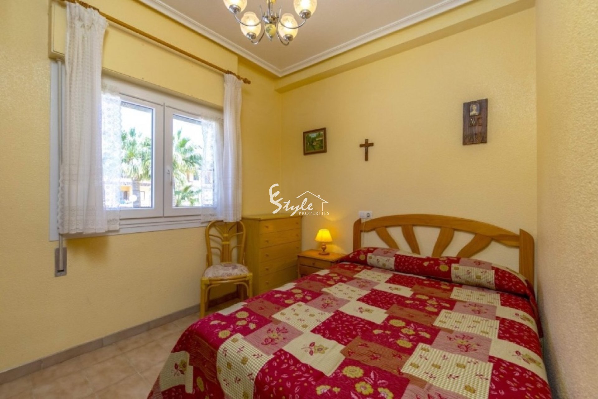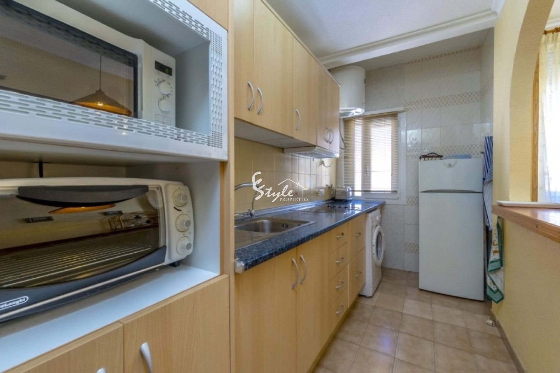 Cozy south facing apartment for sale just 200 meters from the sea in the urbanization of Punta Prima. The apartment has 2 bedrooms with fitted wardrobes, 1 bathroom, furnished kitchen, a bright living-dining room and a sun terrace. Closed urbanization has a swimming pool and parking spaces on site. Shops and restaurants are just 5 minutes away, as are the two beaches of Punta Prima.