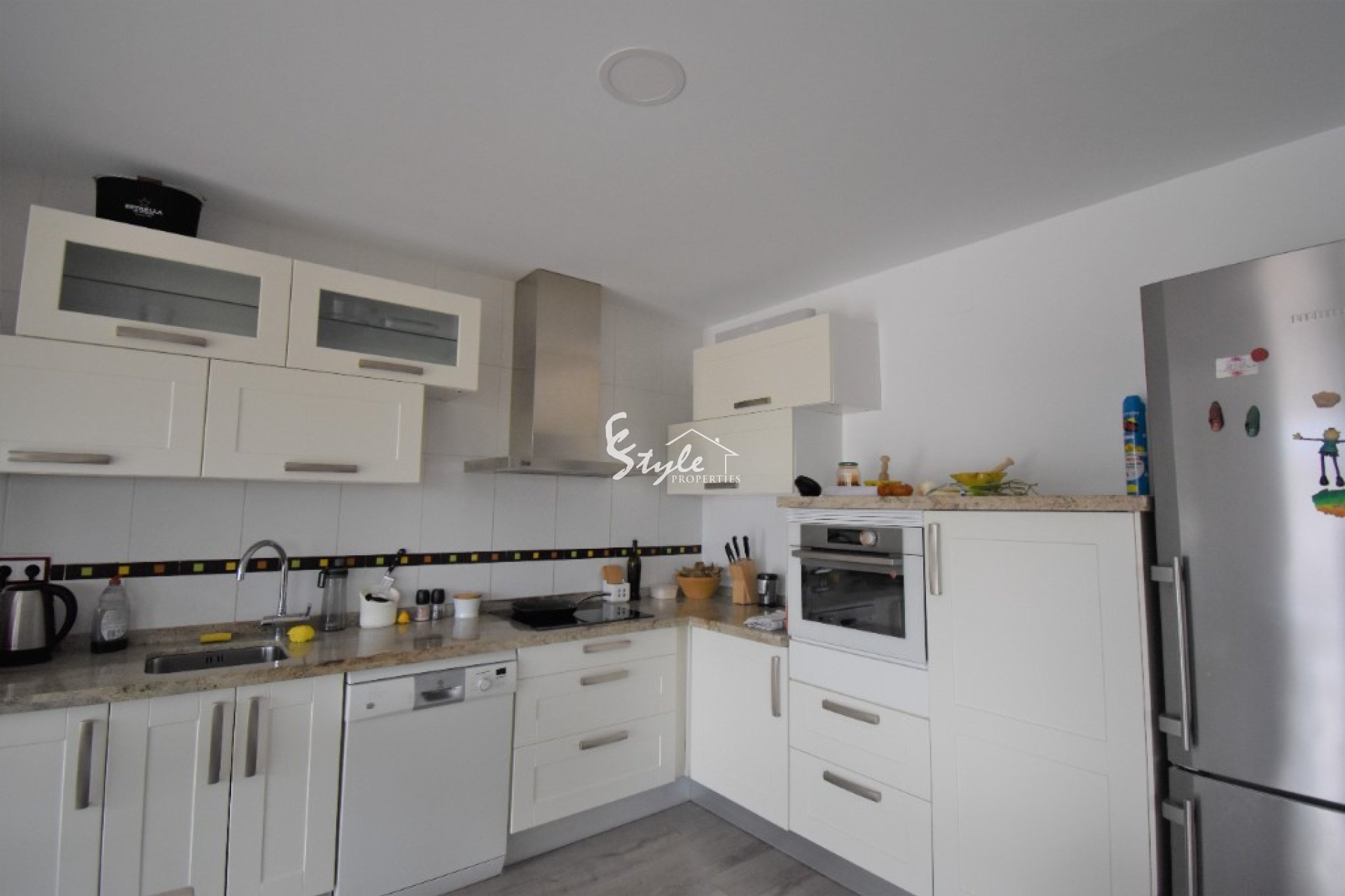 This is a home for living comfortably during all seasons in the lovely Pinar de Campoverde. The property is situated on one of the highest positions in this beautiful residential area on a plot of 800 m2. On the plot you have a large garden with storage room and private pool. The house has a separate covered terrace, built-in wardrobes and is facing South/East. A mature garden surrounds the house. The driveway leaves access for off-road parking. 1 km to the local commercial centre. The popular Lo Romero 18-hole golf course is at 3 km. distance and the lovely white sandy beaches of Torre de la Horadada at some 10 km. distance. 50 km. to the Airport of Murcia and 70 km. to Alicante Airport.