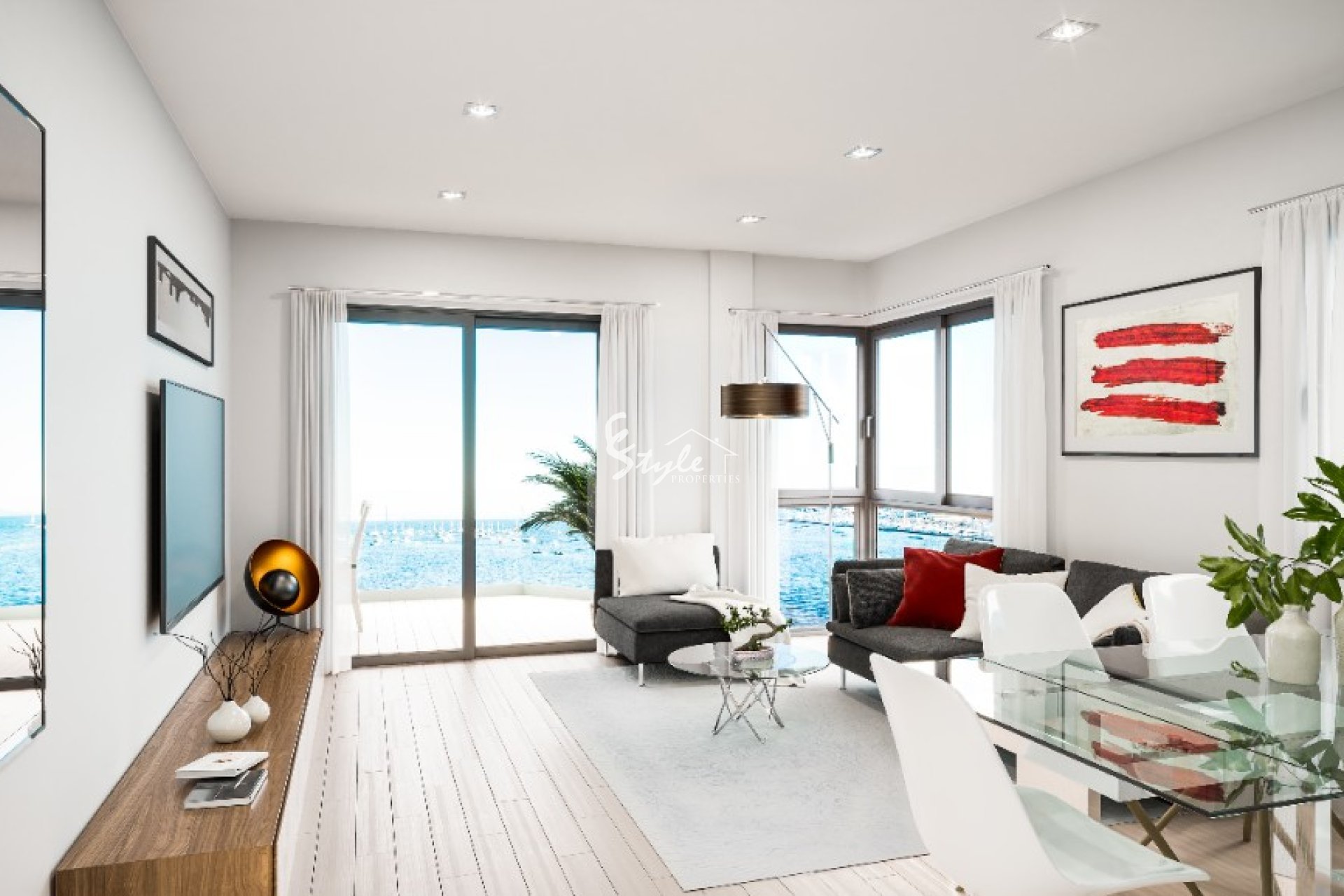 Luxury new complex located in Lo Pagán of Mar Menor, Murcia region on the first line to Mediterranean Sea and panoramic sea views. Include new built apartments with community pool and underground parking spaces. The new built promotion has 3 bedrooms, 2 bathrooms and living/dining room, on the ground floor terrace spaces with different orientations to allow the sun in every day of the year. The properties on the top floor benefit from a private solarium. Prices include all kitchen furniture with all appliances, A/C for living room and lighting with light points built-in.