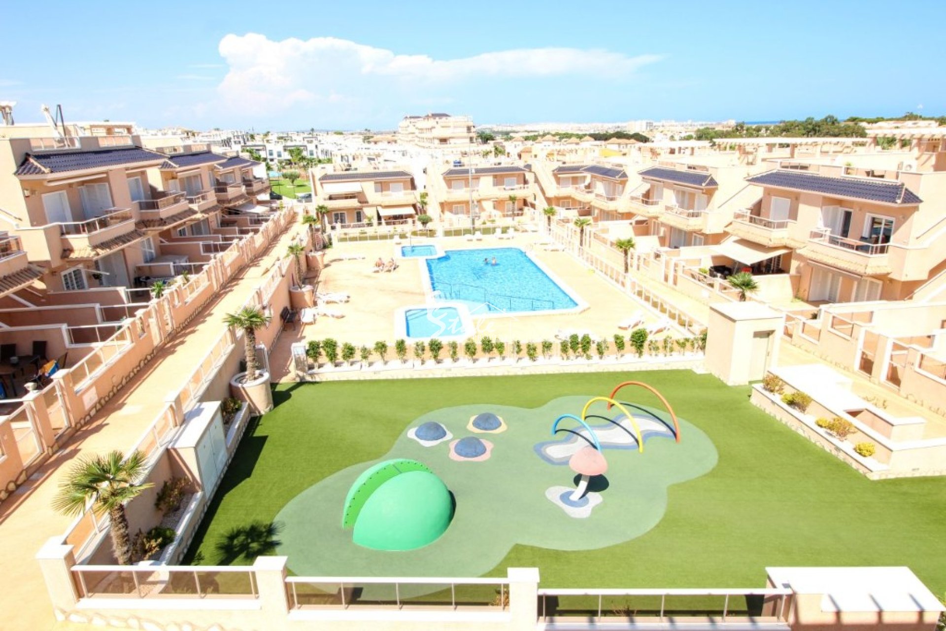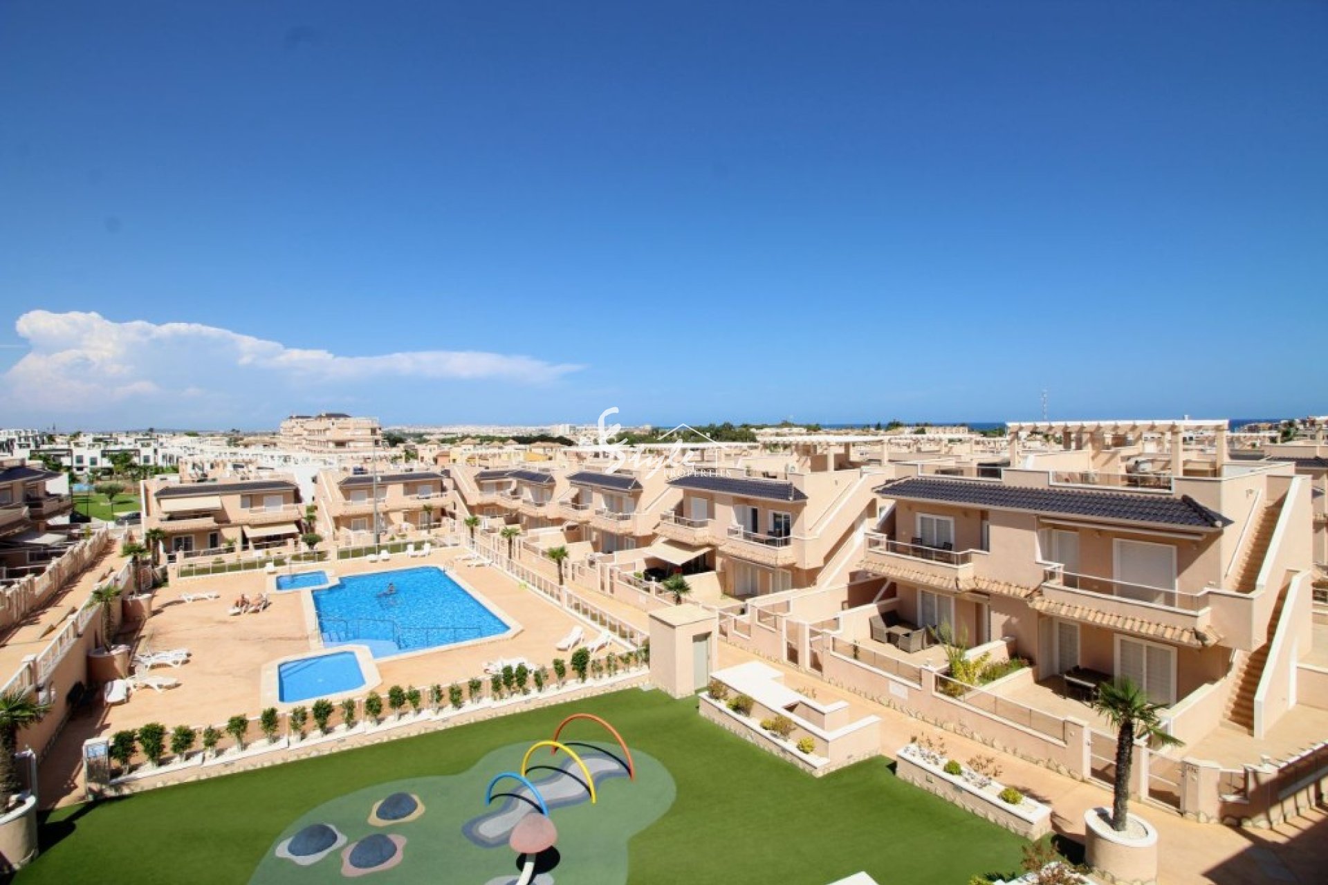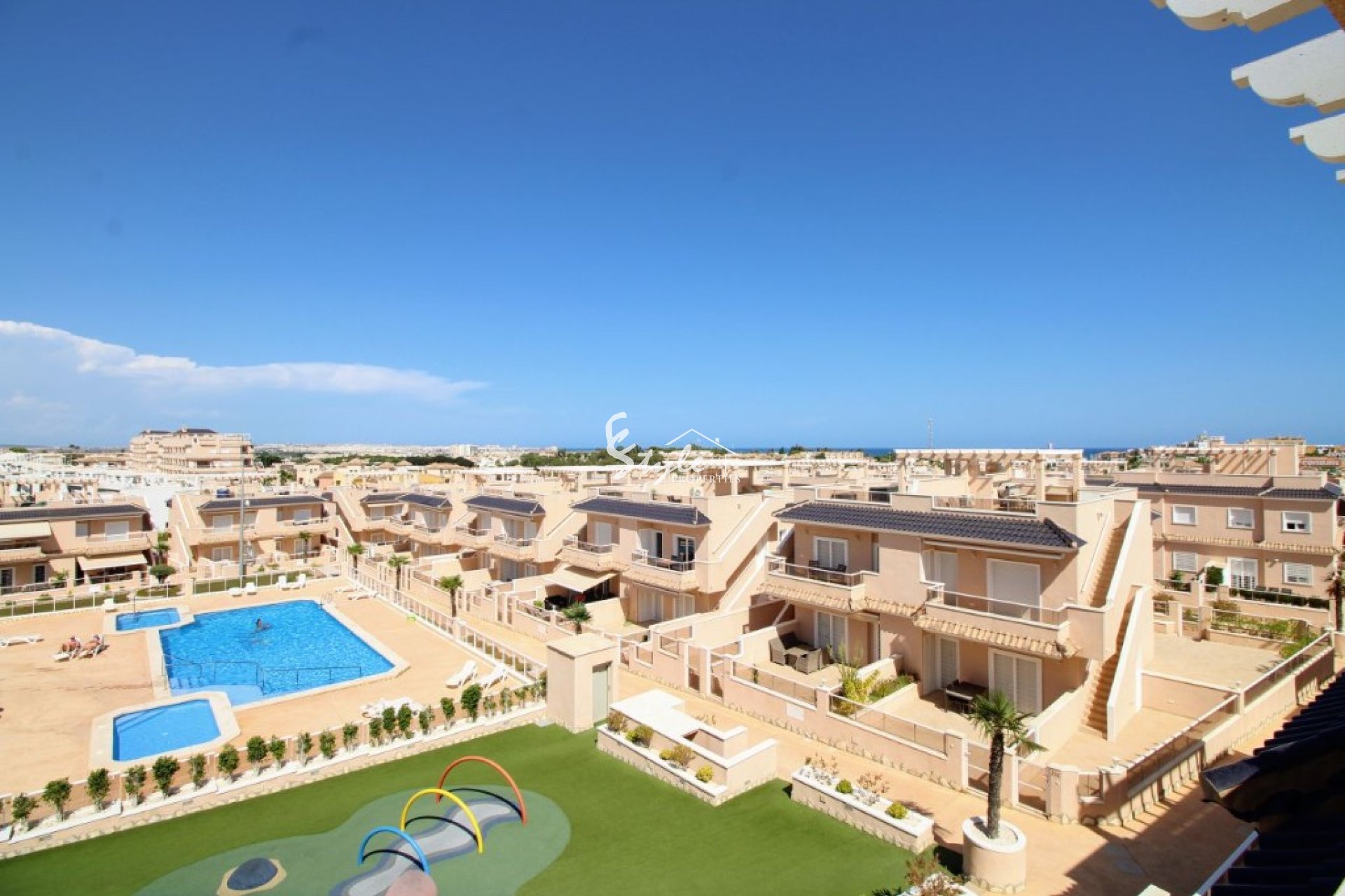 We offer you for sale a top floor apartment with a private solarium in one of the best gated communities in Punta Prima - Vista Azul XXVII. It offers to its residents communal swimming pools (one of each is a heated one), outdoor gym, sauna, children's playground, 24 hour security, green areas for relaxing and underground parking.