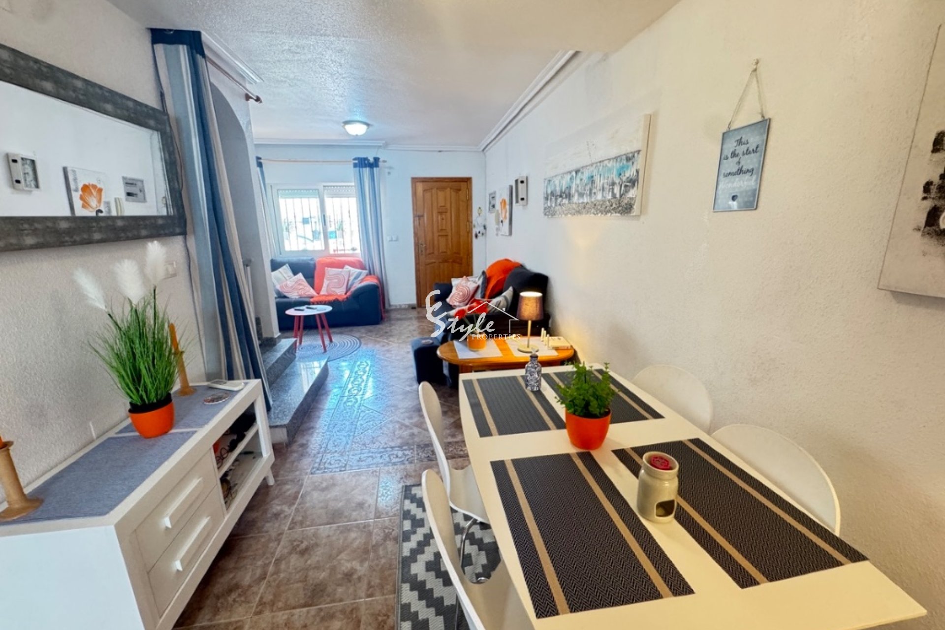 Таунхаус в продаже в жилом комплекс с бассейном, расположен недалеко от торгового центра La Zenia Boulevard и недалеко пляжа Ориуэла Коста. Дом имеет 3 спальни, просторную и светлую гостиную, кухню и 3 ванные комнаты