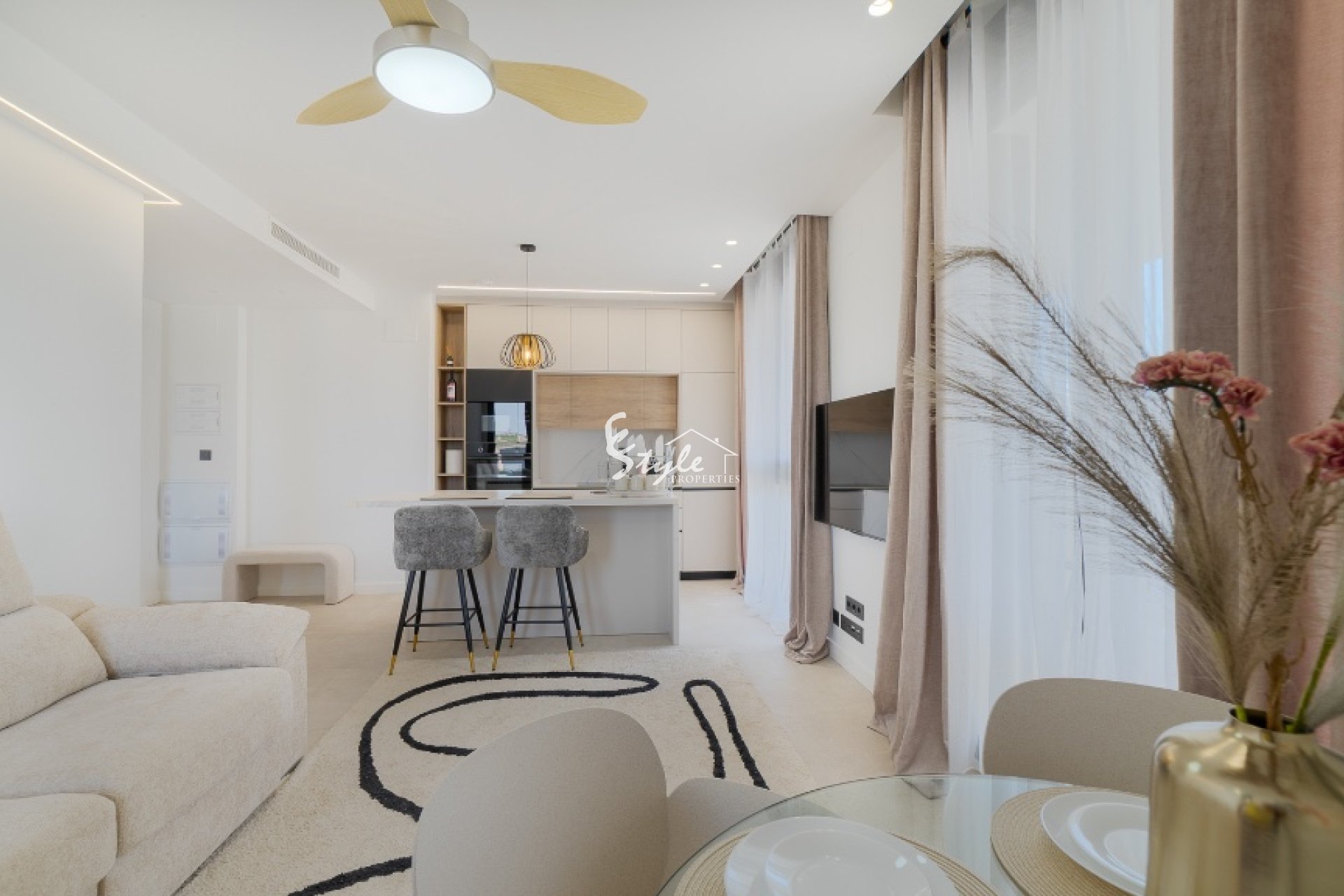 В апартаментах есть две спальни и две ванные комнаты, терраса, гостиная с полностью оборудованной открытой кухней , а также терраса. Продается полностью меблированной .