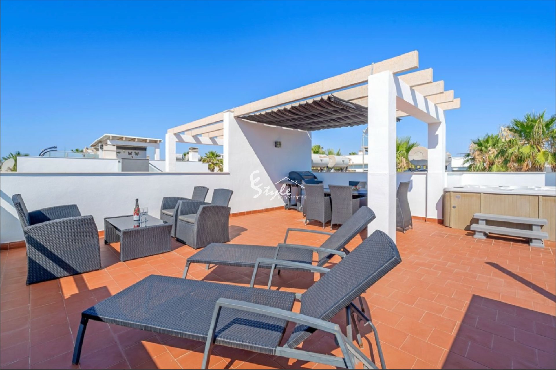 Квартира на продажу состоит из 2 спален, 2 ванных комнат, красивой и светлой гостиной, полностью оборудованной кухни и 2 террас( одна из который - солярий).