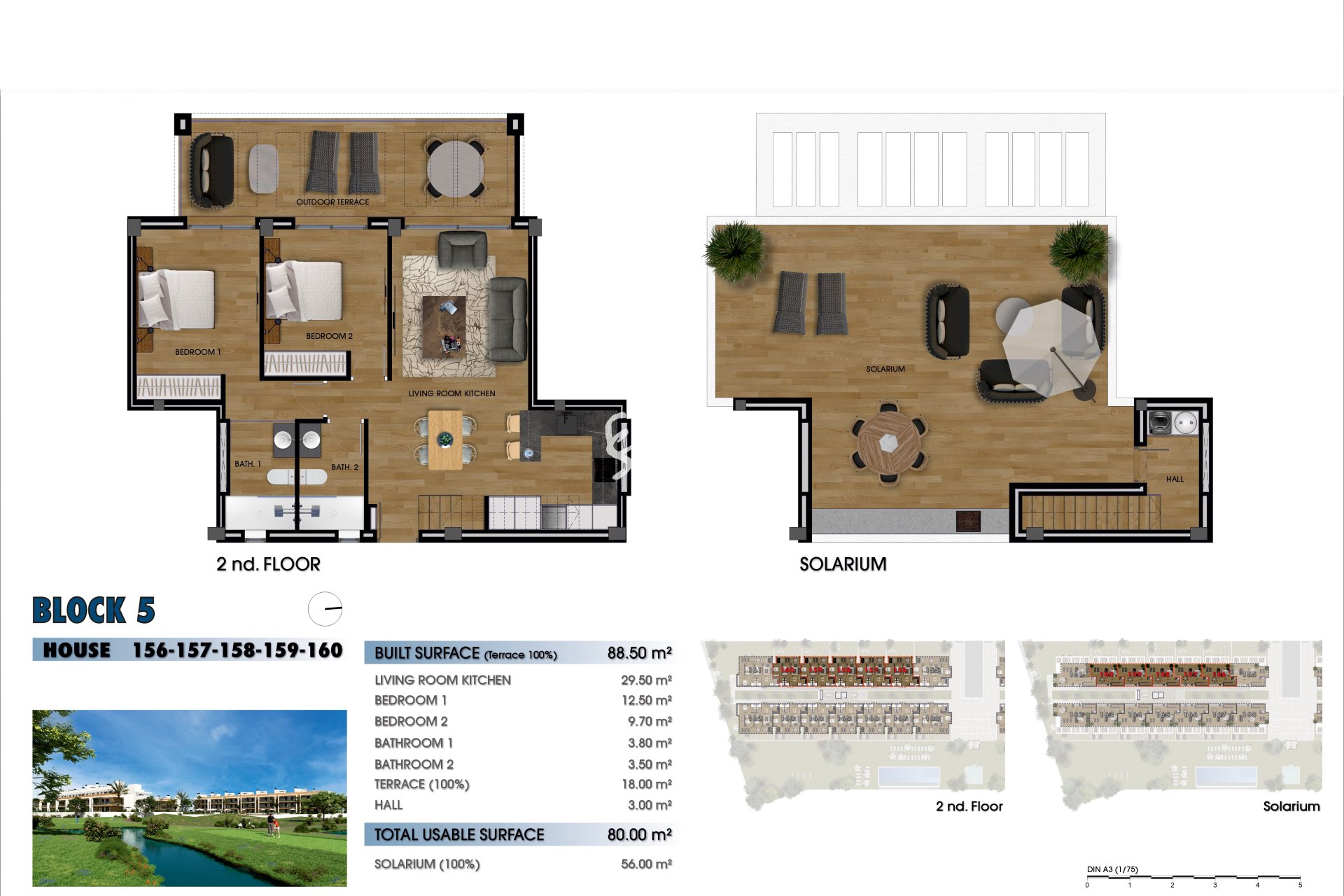 Экстерьеры этих домов спроектированы для обеспечения непревзойденного образа жизни на открытом воздухе. Каждая собственность имеет террасу, идеально подходящую для наслаждения видами и средиземноморским климатом. Кроме того, некоторые типы включают частный солярий, идеально подходящий для отдыха на солнце. Дома на первом этаже имеют частные сады, предоставляя личное зеленое пространство для отдыха с семьей или друзьями. Для тех, кто ищет дополнительную роскошь, некоторые объекты имеют частный бассейн, предлагая личный оазис для освежения в жаркие летние дни.