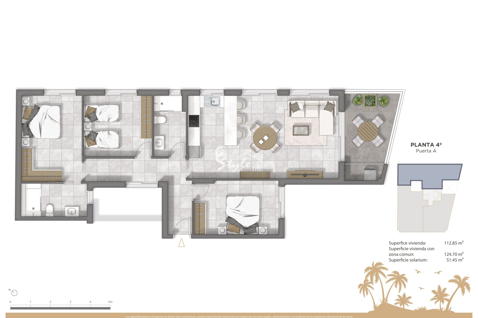 Интерьеры недвижимости спроектированы для обеспечения комфорта и стиля. Квартиры, квартиры на первом этаже и пентхаусы оснащены керамическими полами, которые придают современный вид и легки в уходе. Кухни оборудованы бытовой техникой, что облегчает повседневную жизнь и позволяет наслаждаться готовкой с первого дня. Встроенные шкафы в спальнях предлагают много места для хранения, поддерживая порядок и организацию. Недвижимость доступна в конфигурациях с 2 и 3 спальнями, с 2 ванными комнатами, адаптируясь к различным семейным потребностям и стилям жизни. Планировка включает террасы, предоставляя дополнительное пространство для отдыха и релаксации.